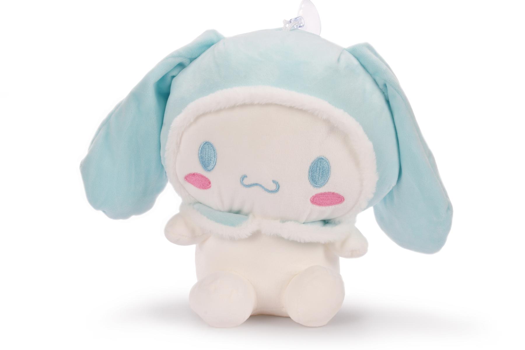 Игрушка обладает привлекательным дизайном: белое тело, голубой капюшон с ушами, вышитые глаза и розовые щечки создают милый и дружелюбный образ. Ободок капюшона выполнен из мягкого материала, усиливая уют и комфорт.