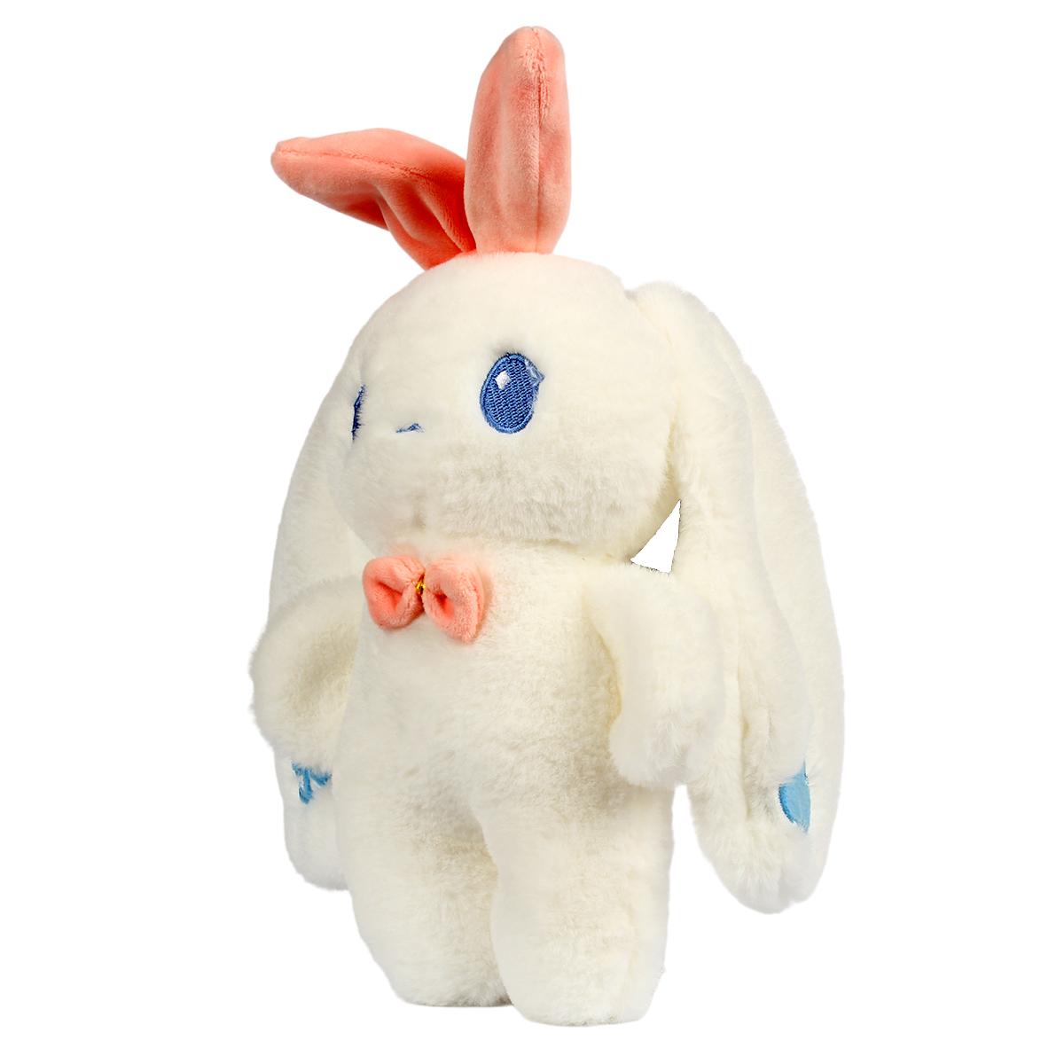 Мягкая игрушка заяц 24см, белый/розовый, с бантиком, для детей от 3 лет