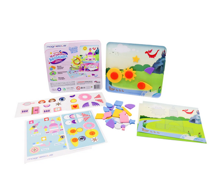 Набор включает в себя более 60 объемных деталей, выполненных из приятного на ощупь и безопасного ЭВА-материала на магнитной основе. В комплект также входят тематические наклейки, листы с контурами для сборки по образцу и красочные игровые фоны. Продукция Magneticus разработана совместно с детскими психологами и педагогами, что гарантирует соответствие возрастным особенностям развития. Все материалы гипоаллергенны, сертифицированы и произведены в России.