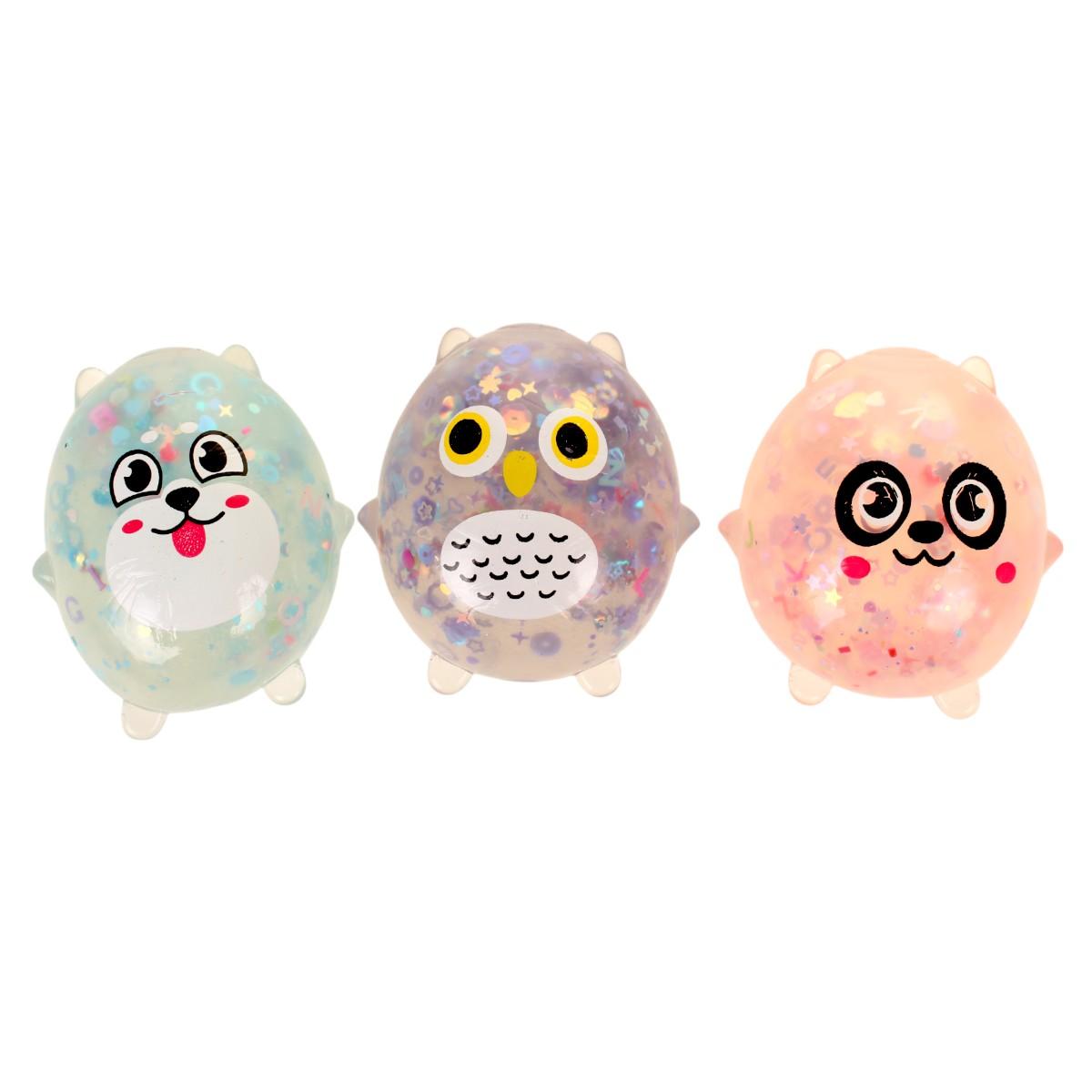 Мякиш-антистресс 1шт. "Сова" с блестками 9 см, разноцветный принт, из мягкого силикона