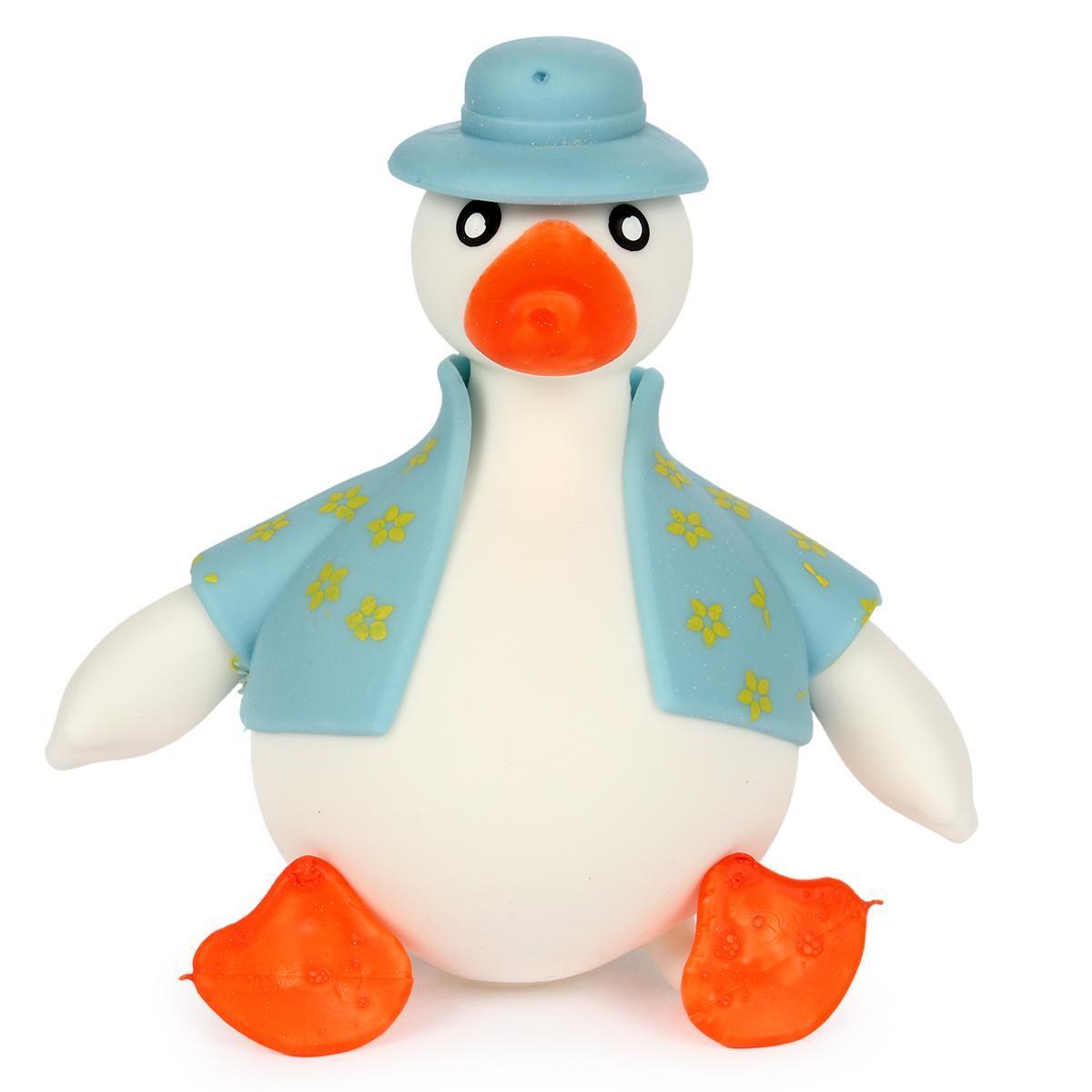 Дополнительные детали: выполнена из качественного пластика, легко очищается, подходит для игры в воде. Размер 16 см, цвет белый с голубой одеждой и оранжевым клювом. Производство из Китая, изготовитель – Санкт-Петербургская компания Сити тойз групп.