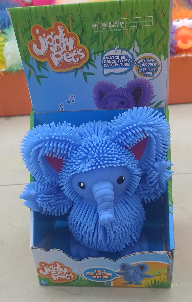 Мягкая игрушка-слон «Jiggly Pets», интерактивная, ходит и издает звуки, 18 см, полимерные материалы, зеленый/голубой