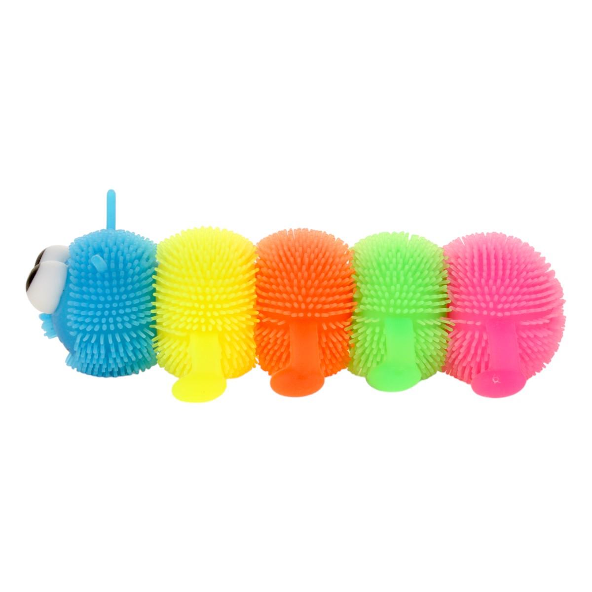 Размер игрушки составляет 18 см, а доступные цвета включают синий, желтый, зеленый и розовый. Каждый сегмент игрушки имеет текстурированную поверхность с мелкими шипами, что добавляет интересный визуальный эффект. 'Гусеница' станет не только игрушкой, но и отличным помощником в обучении и развитии вашего ребенка.