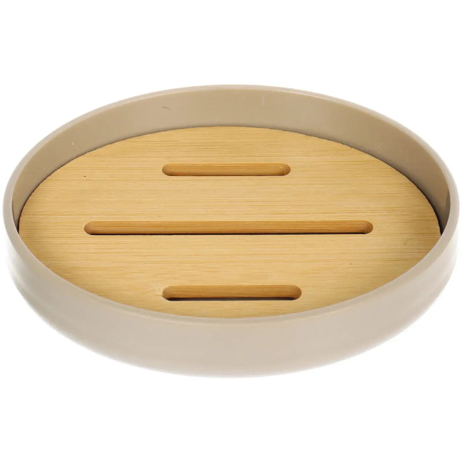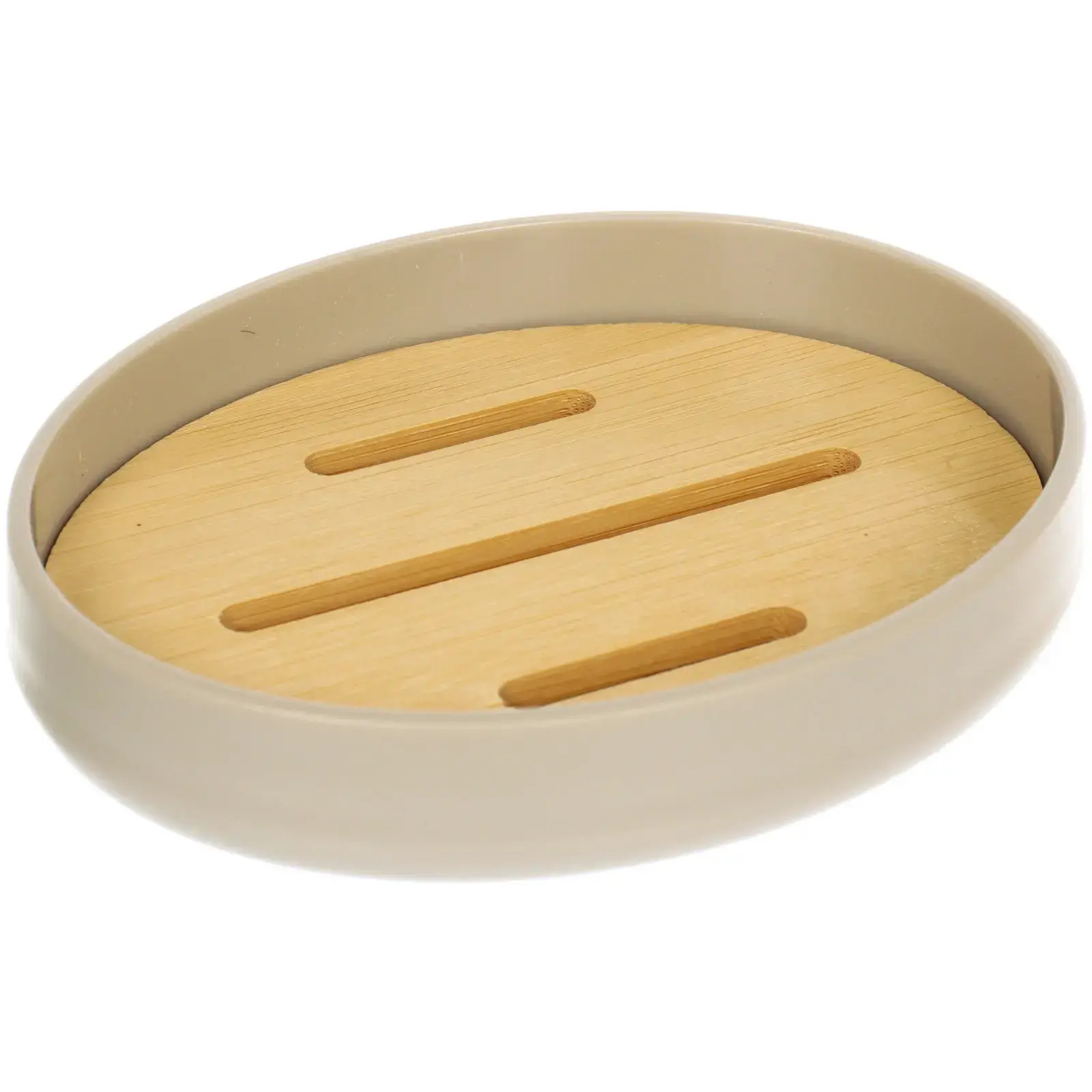 Мыльница 'Ариэль' бежевая, пластик/бамбук, стильный дизайн, практичное решение