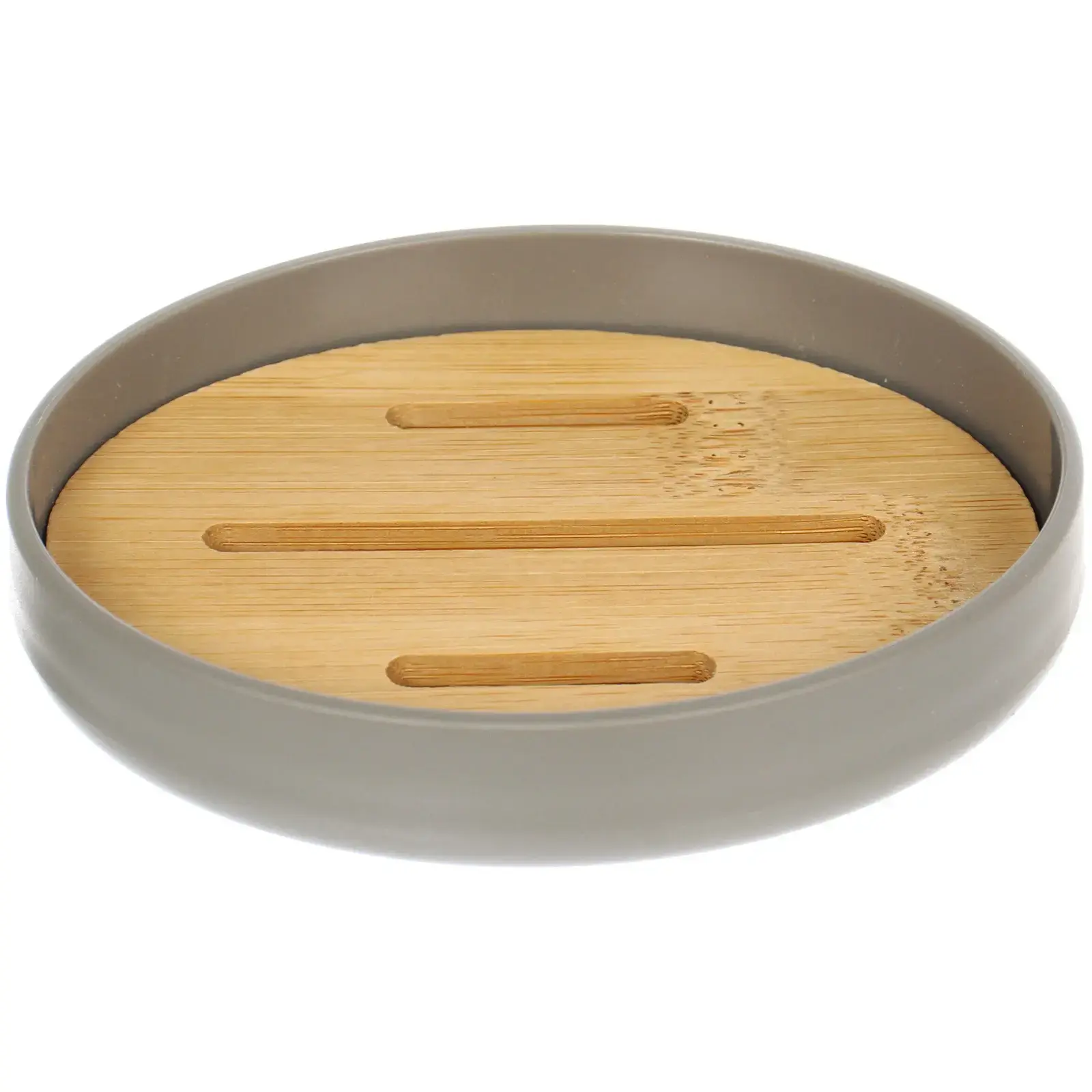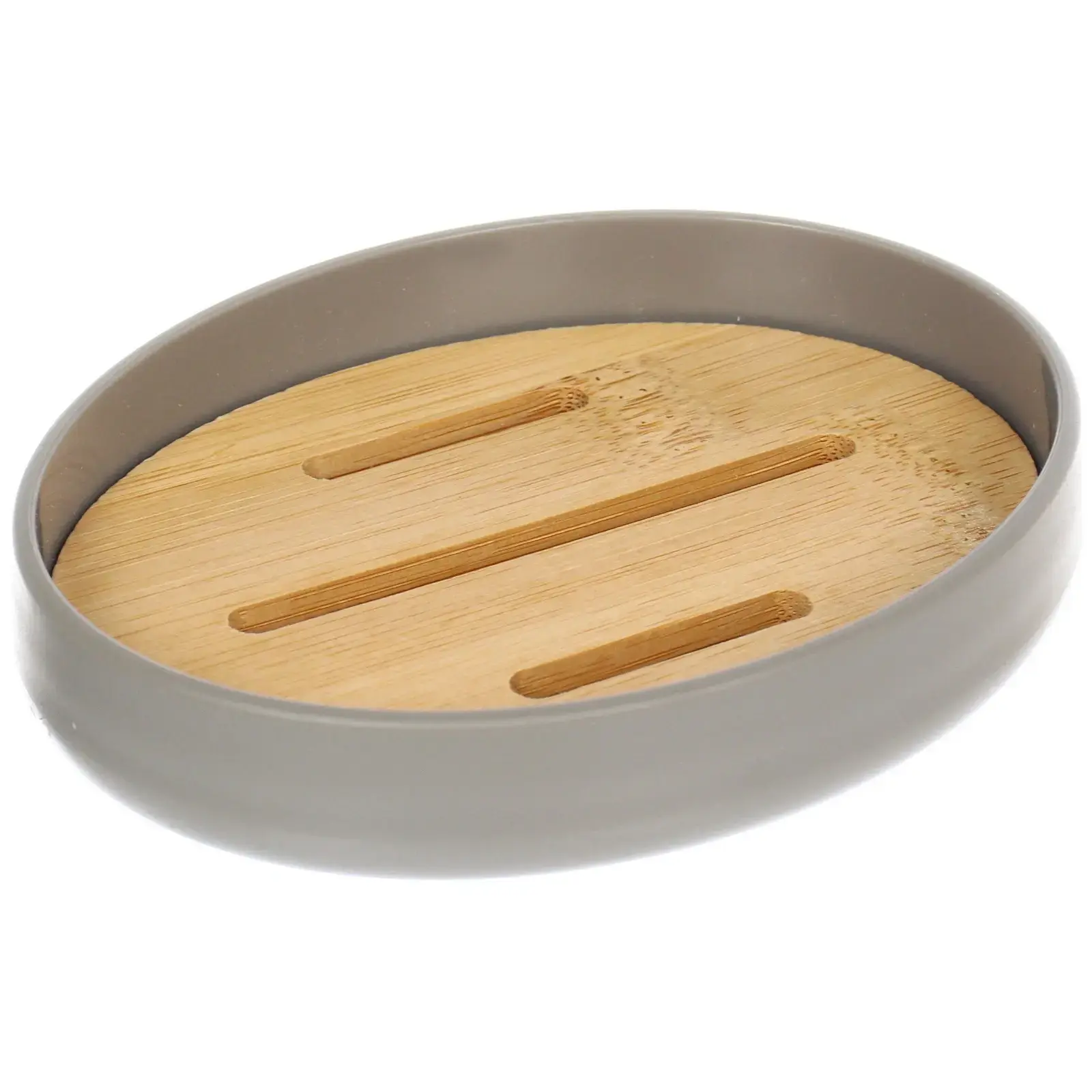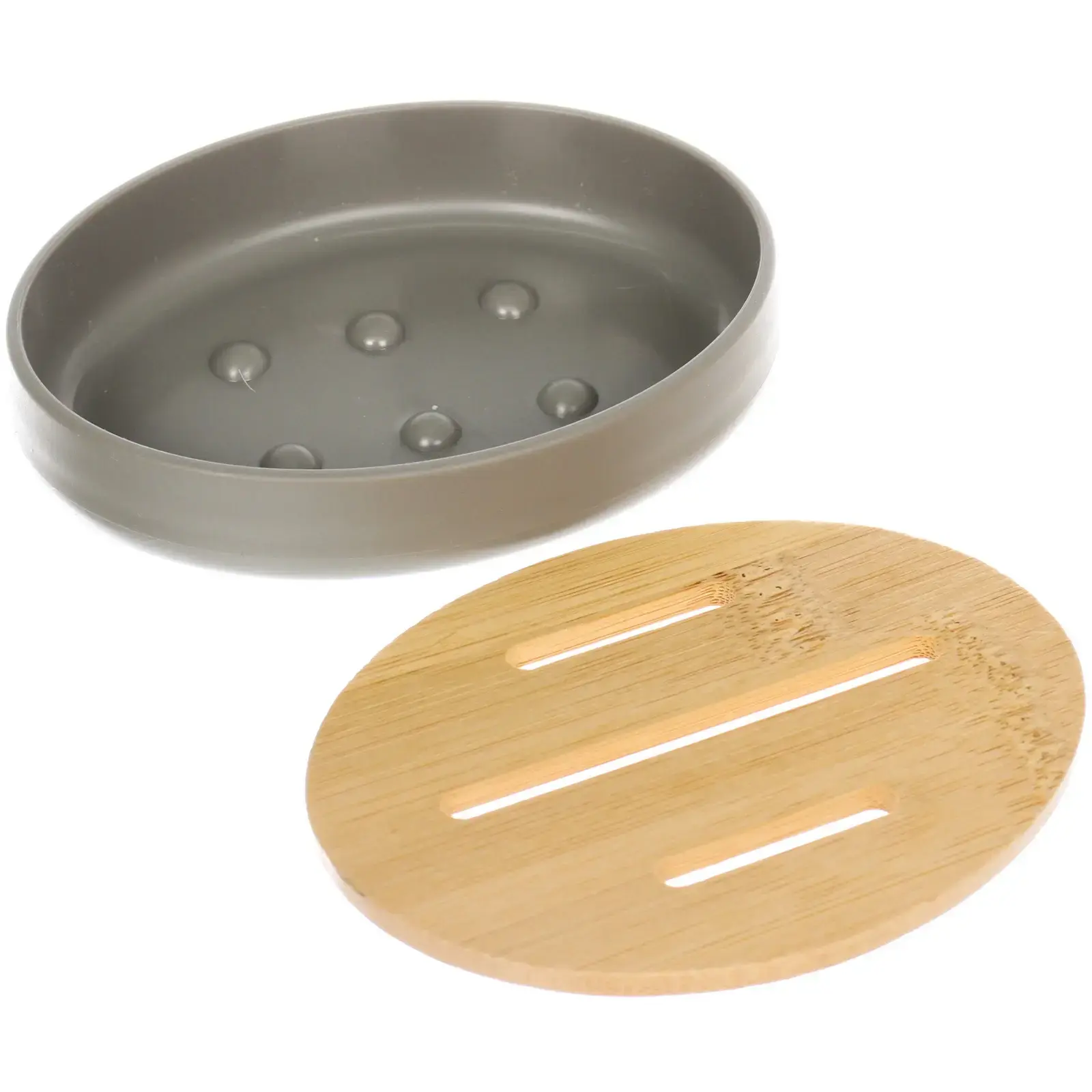 Мыльница "Ариэль" серая с бамбуковой вставкой, пластик, для ванной