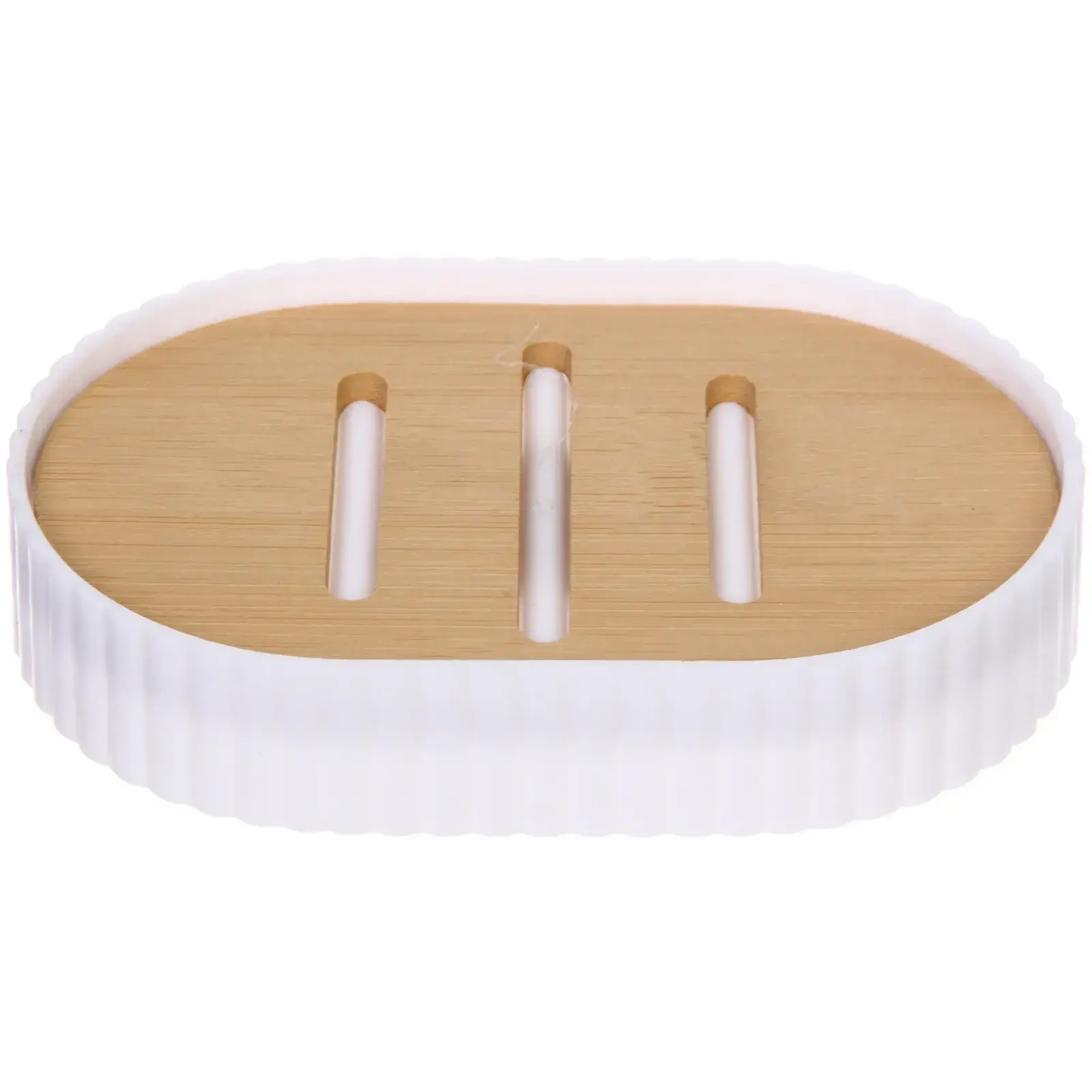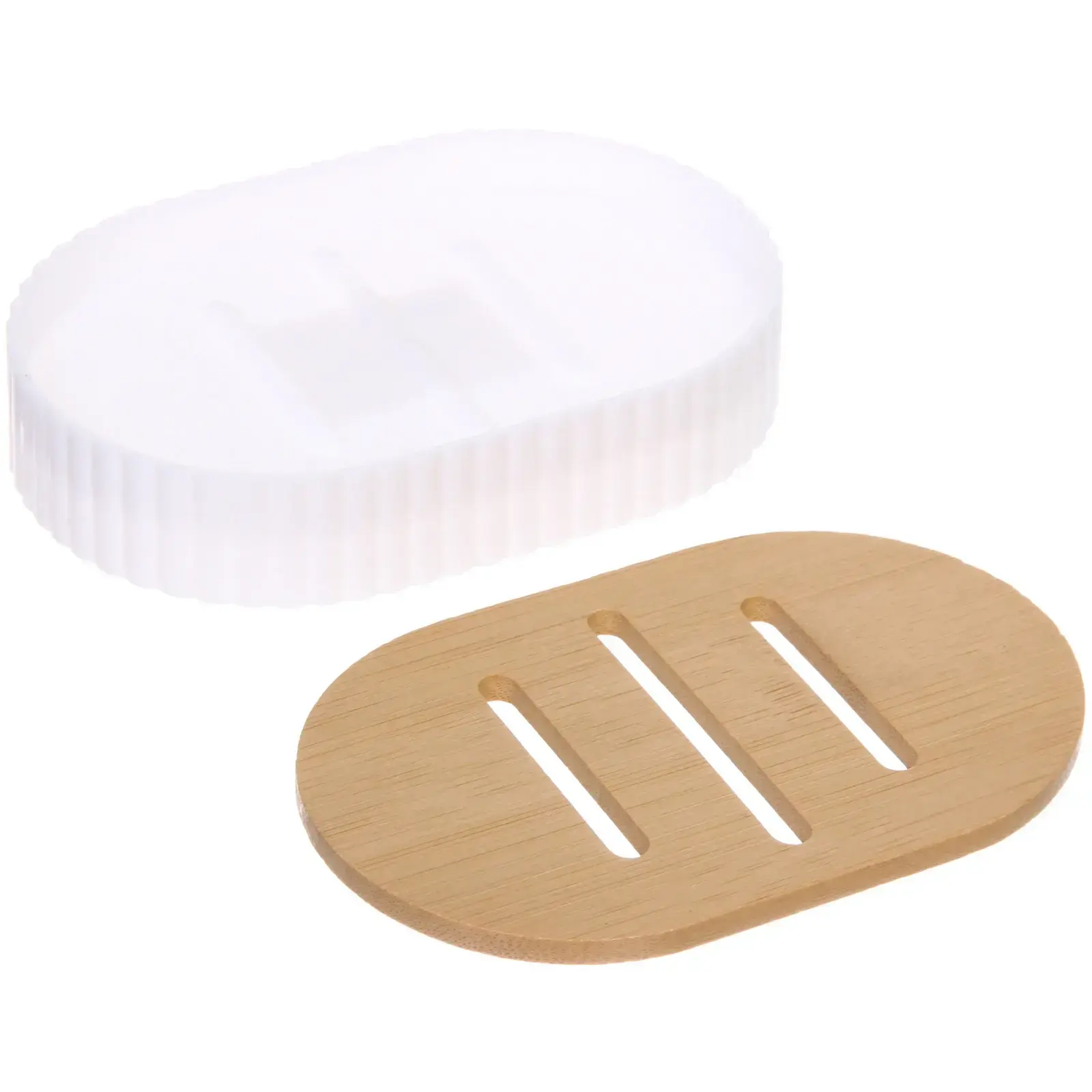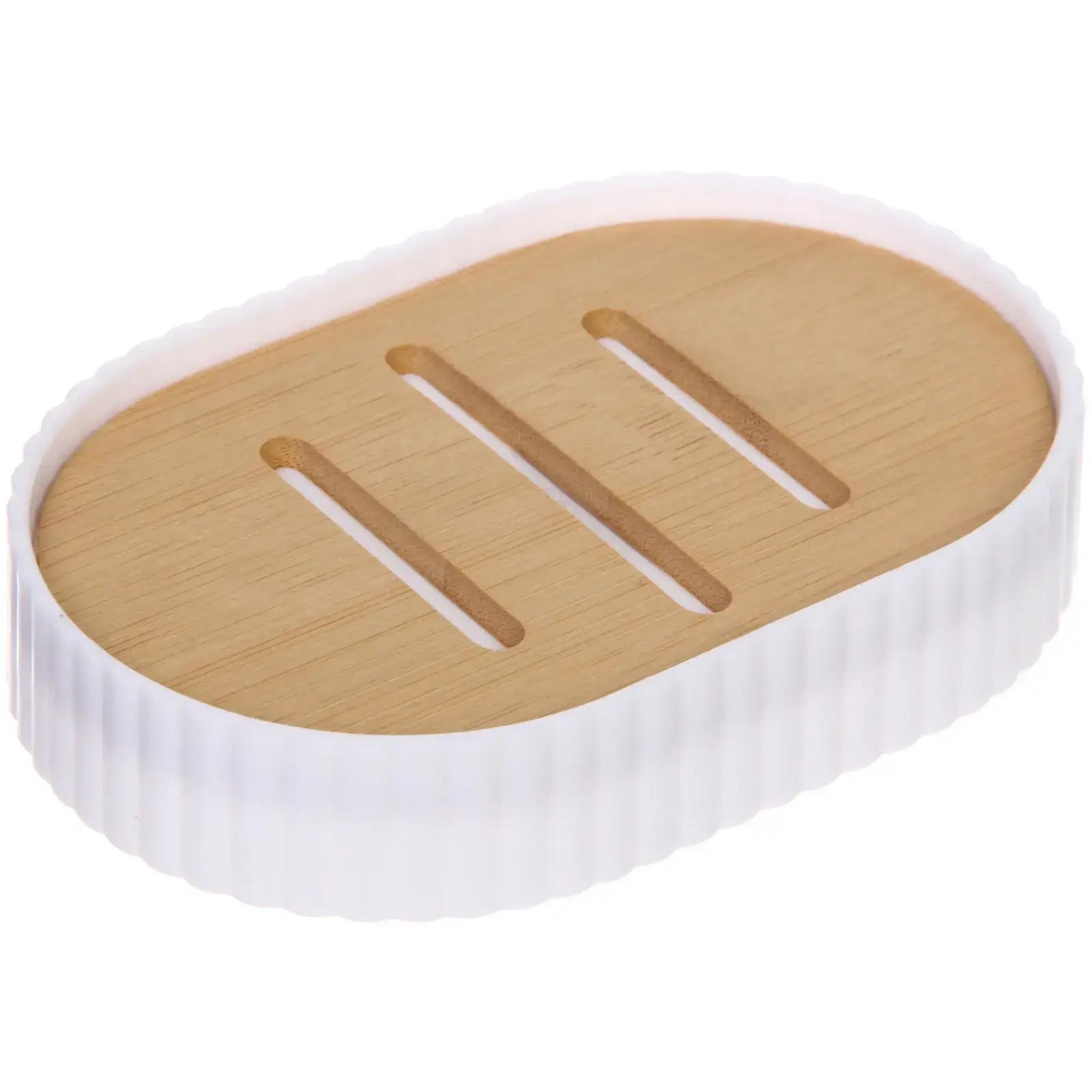 Мыльница имеет овальную форму и выполнена из двух материалов: верхняя часть из бамбука, а нижняя — из белого пластика. Это сочетание не только привлекает внимание, но и обеспечивает надежность и долговечность. Размеры мыльницы компактны, что позволяет удобно размещать ее на раковине или ванной столешнице. Выбирайте мыльницу «Франко» и наслаждайтесь комфортом и стилем в вашей ванной комнате!