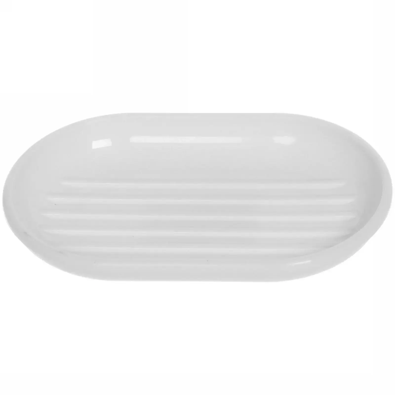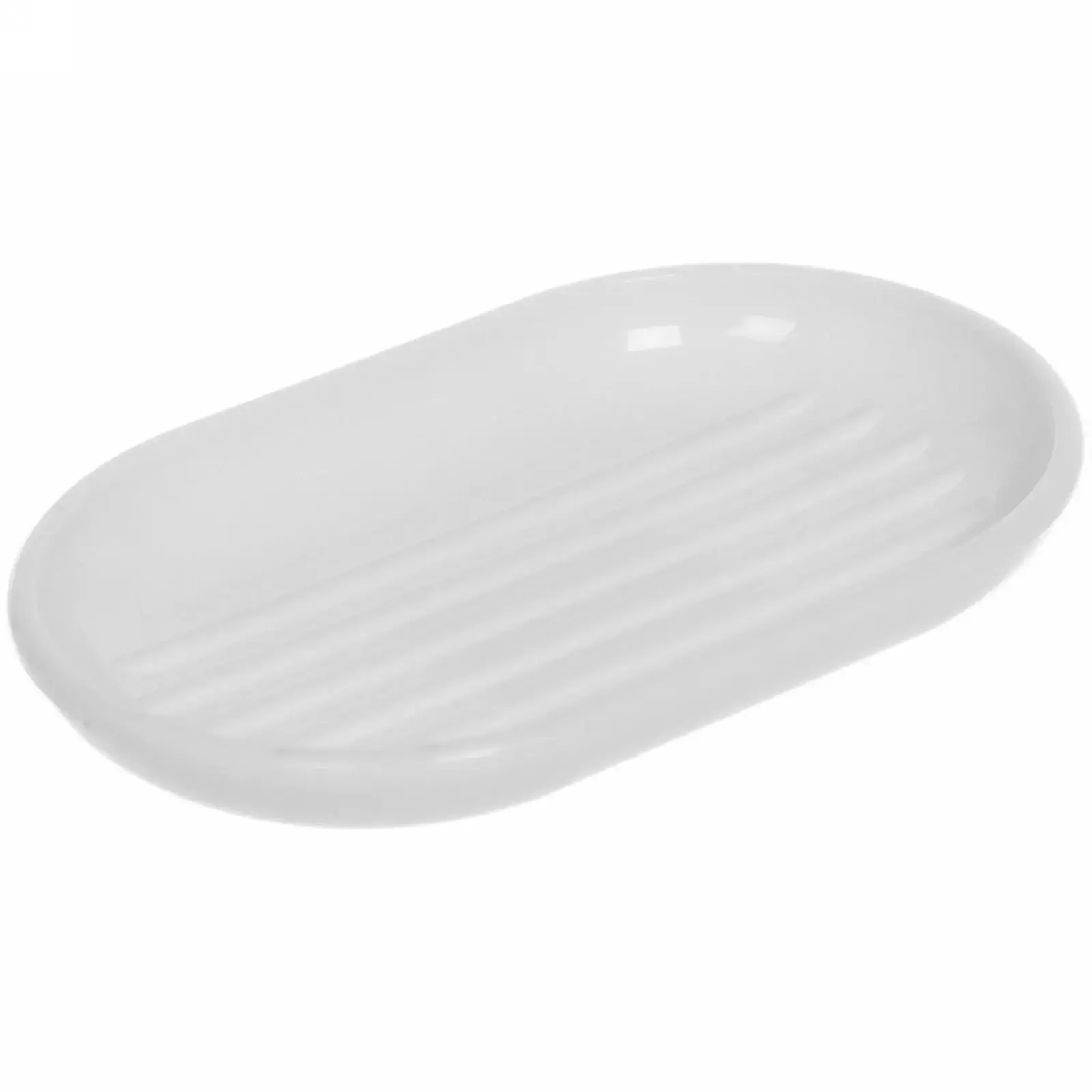 Мыльница выполнена из качественного пластика, что обеспечивает ее долговечность и устойчивость к влаге. Овальная форма и рифленое дно способствуют стоку воды, предотвращая размокание мыла. Размеры мыльницы стандартные, что делает ее универсальной для большинства раковин и ванн.