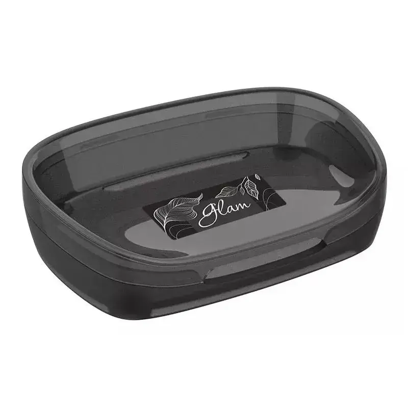 Мыльница пластиковая "Glam" графит, овальная с крышкой, для ванной, прочная и удобная