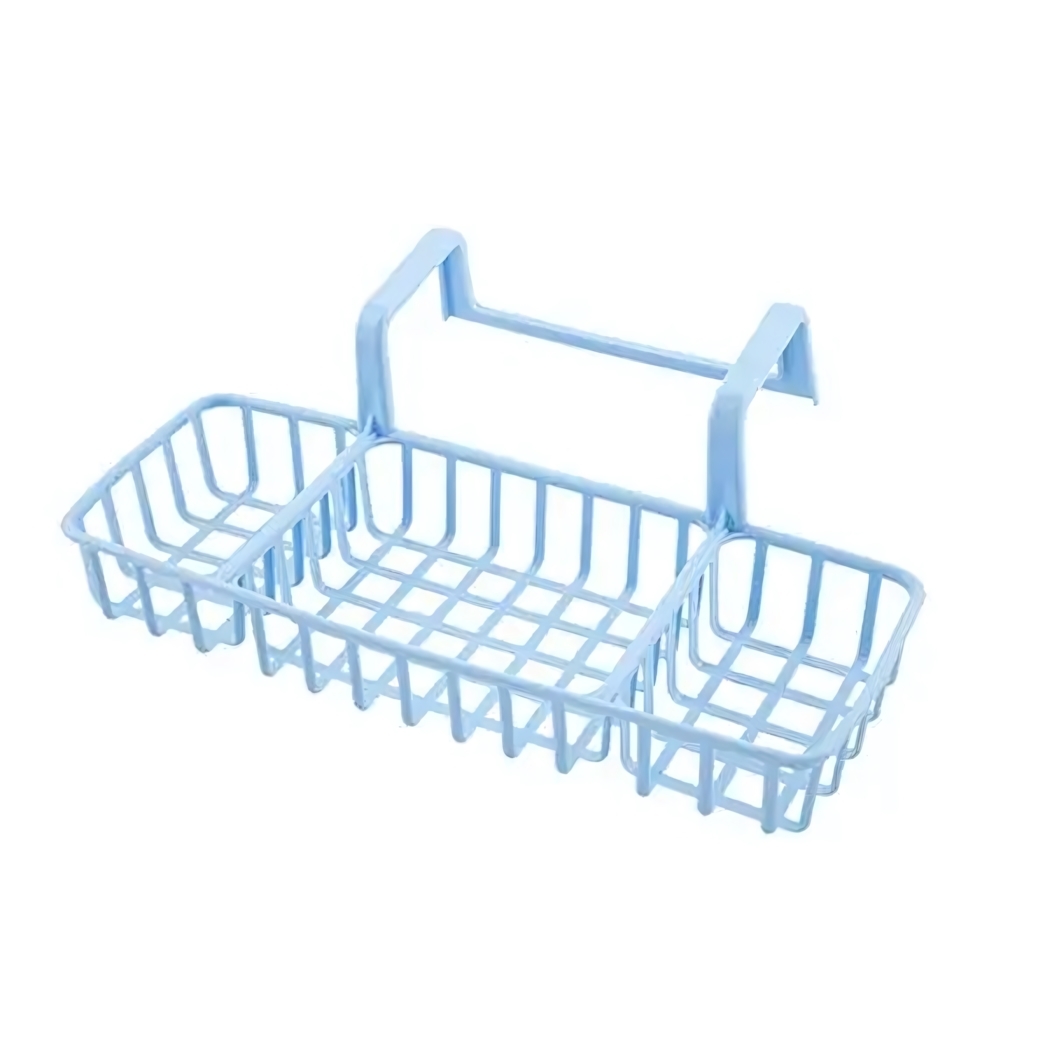 Мыльница навесная пластиковая с 3 отсеками, светло-голубая, ручка для подвешивания