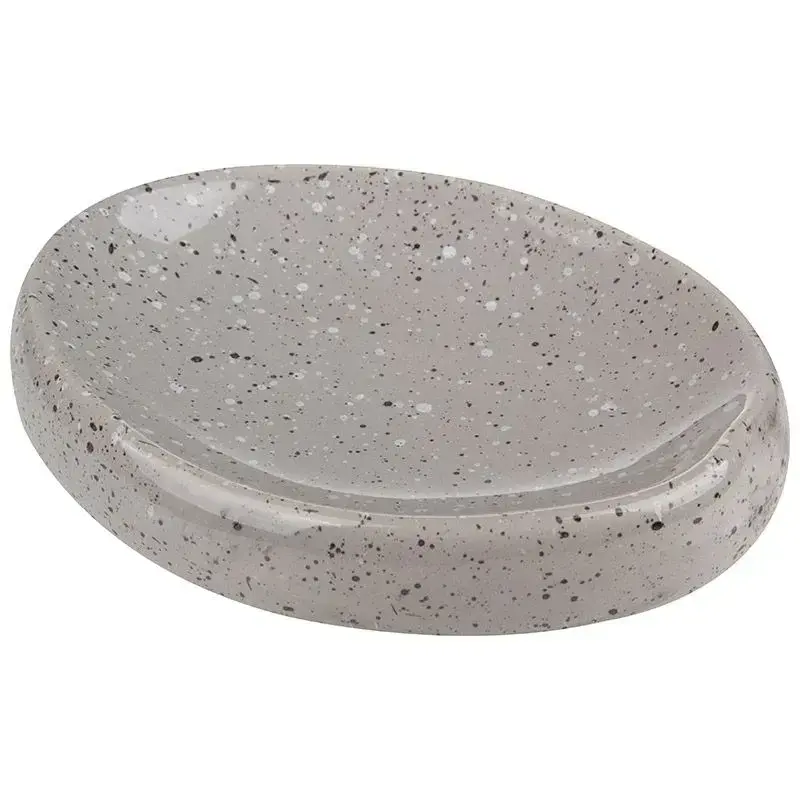 Овальная форма с деликатным серо-спотовым дизайном органично впишется в любой интерьер. Гладкая поверхность с мелкими контрастными вкраплениями создаёт эффект натурального камня, сохраняя лёгкость пластика.