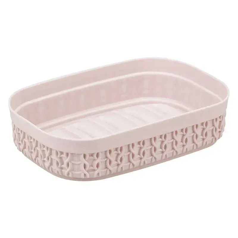 Пластиковая мыльница с изысканным дизайном станет практичным дополнением интерьера. Декоративная плетеная текстура по бокам создает эффект ручной работы, а гладкая внутренняя поверхность обеспечивает гигиеничное хранение мыла.