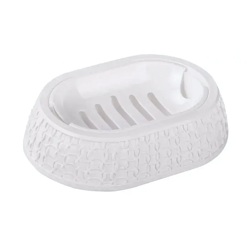 Мыльница для ванной с вязаным плетением, пластик, белый, овальная форма