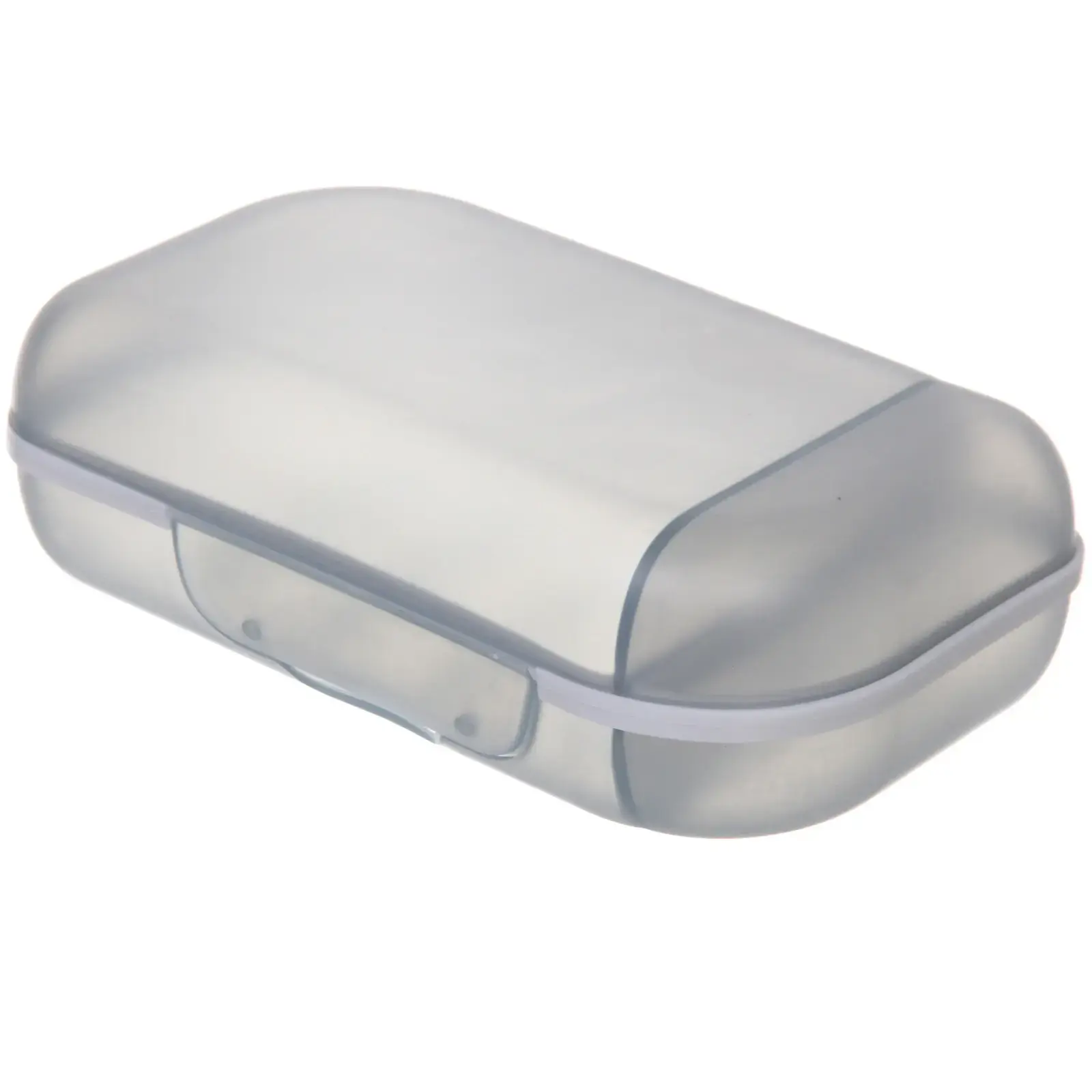 Материал: пластик. Мыльница имеет три отделения для удобного хранения. Размеры не указаны, но она выглядит компактной и удобной для хранения. Закрытая конструкция защищает содержимое от внешних факторов, что делает ее идеальной для использования в ванной комнате или на кухне.