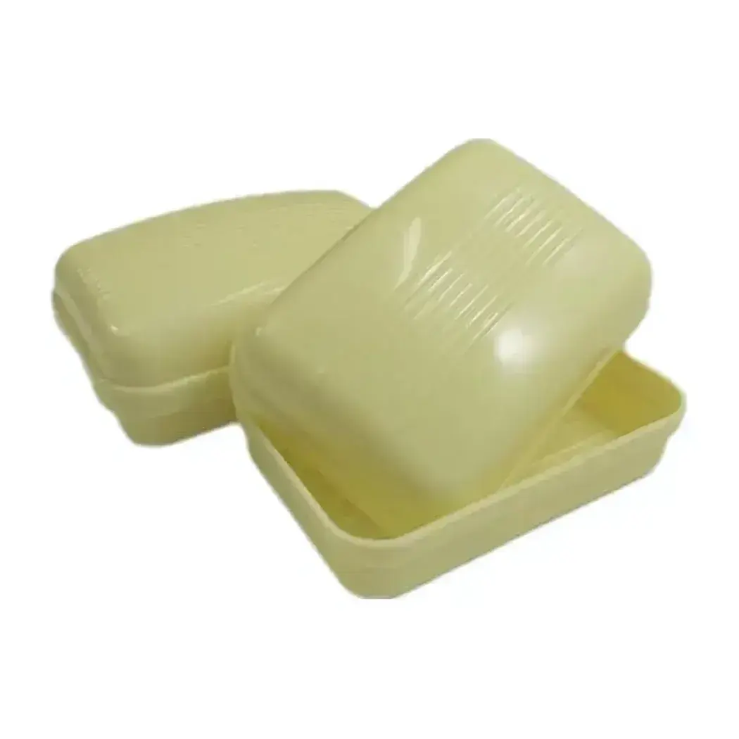 Мыльница для ванной закрытая с рифленой крышкой, пластик, прямоугольная форма, цвет светло-желтый