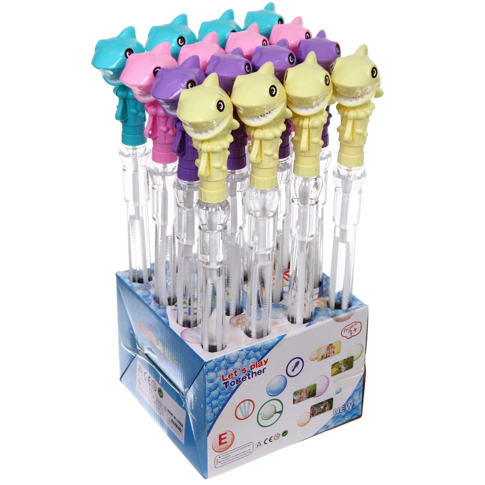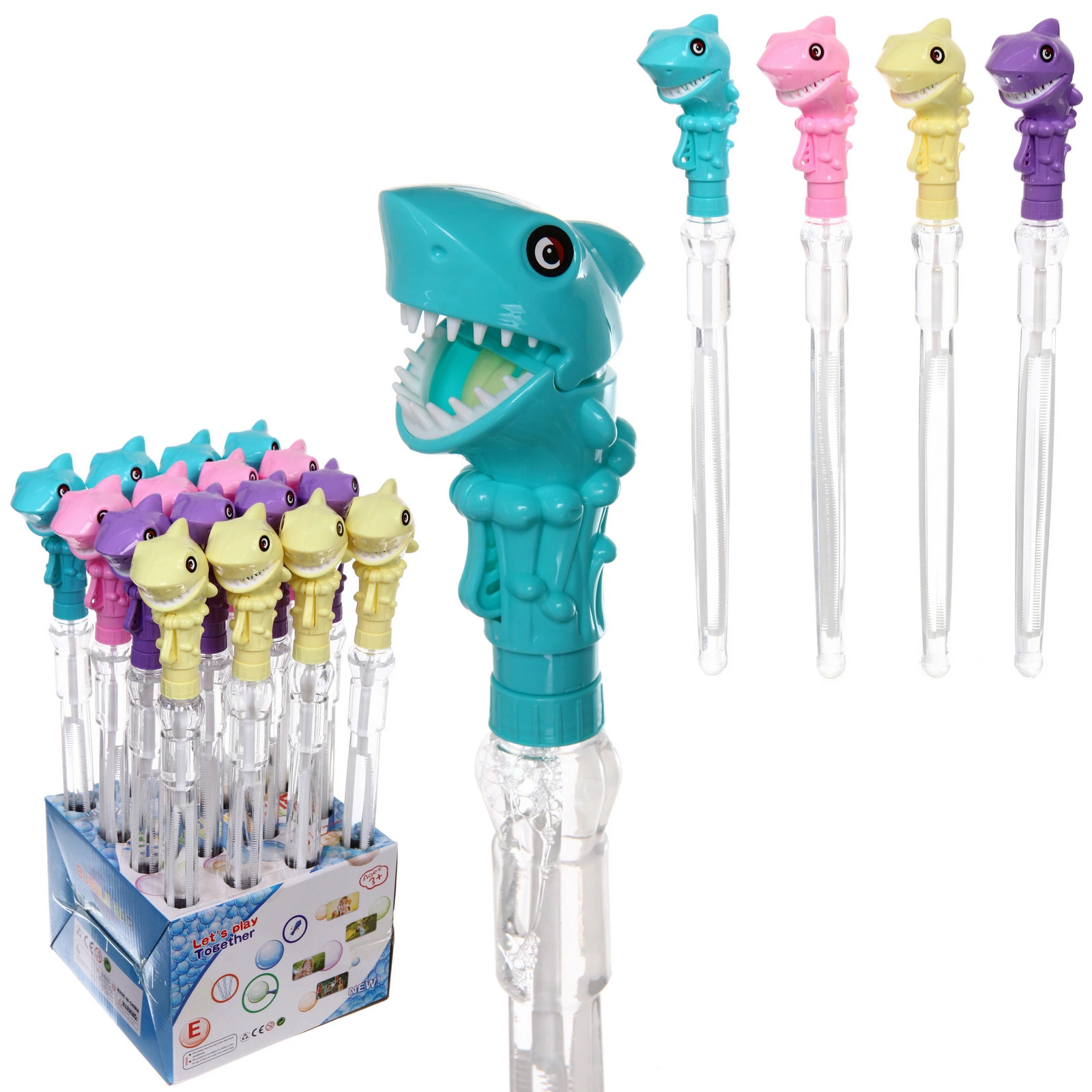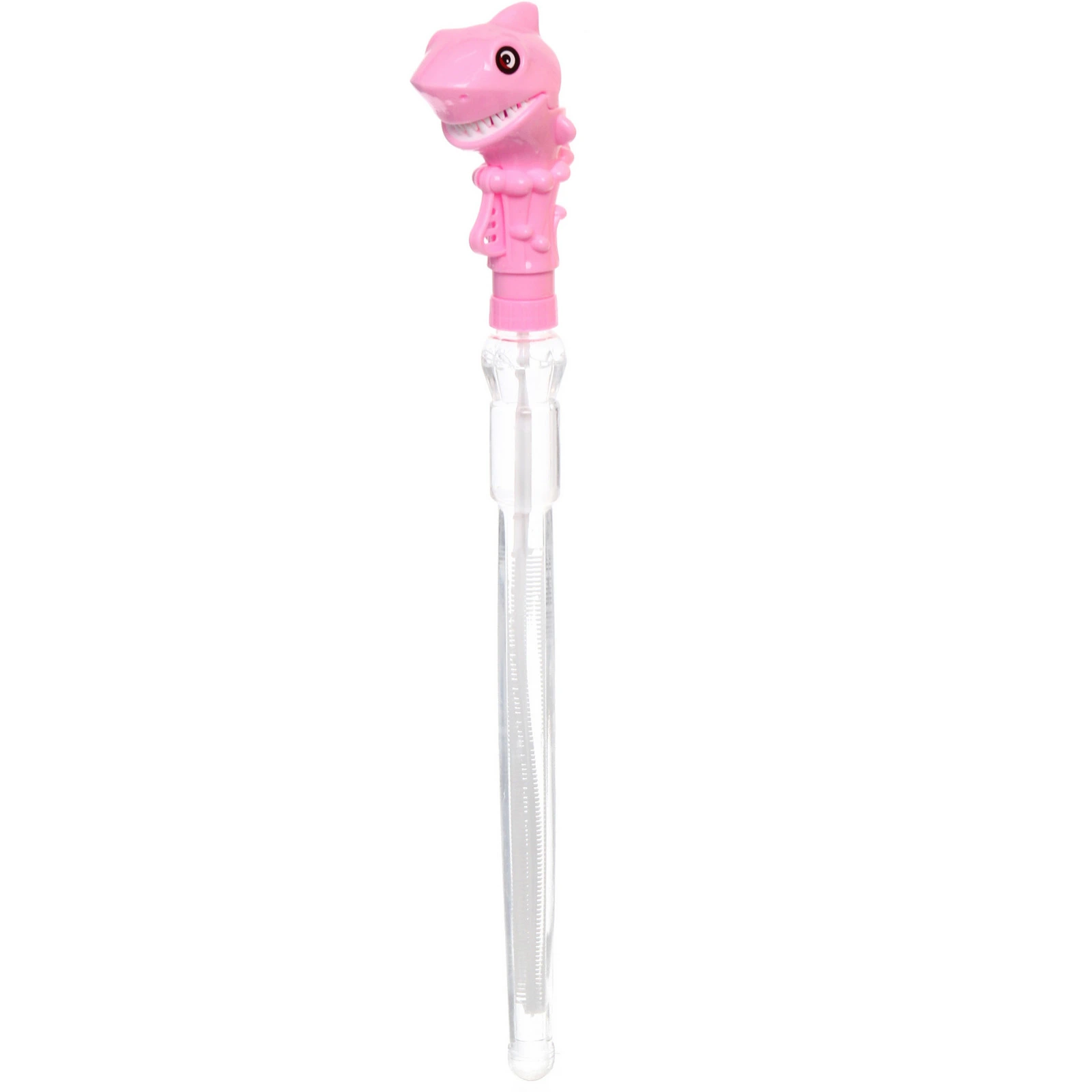 Флакон изготовлен из прозрачного пластика и заполнен мыльным раствором. Внутри расположена палочка для выдувания пузырей. Колпачок выполнен в виде акулы с открытой пастью, что делает игрушку особенно привлекательной для детей. Подходит для активных игр на улице и дома под присмотром взрослых.