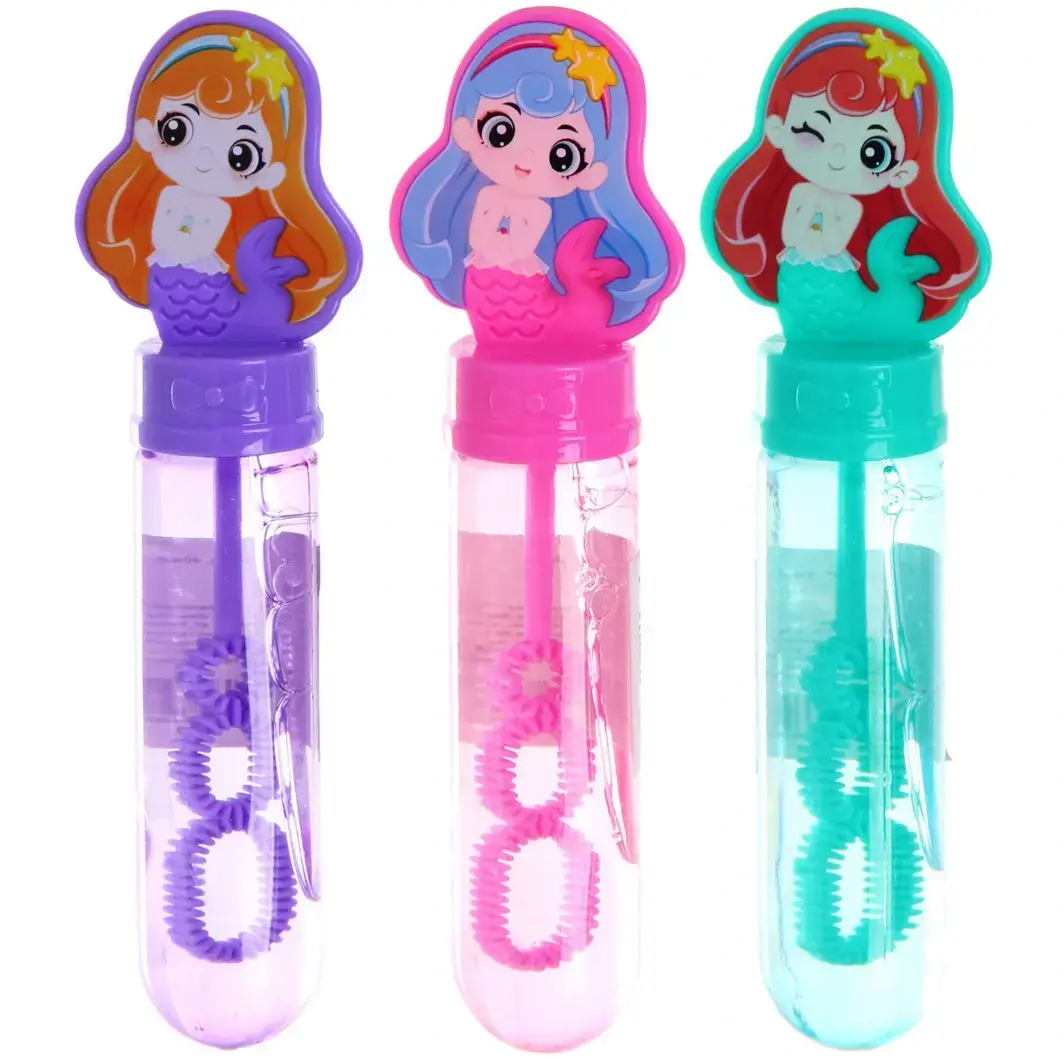 Каждый контейнер украшен оригинальной крышкой в виде русалки, что делает игрушку не только функциональной, но и эстетически привлекательной. Мыльный раствор безопасен для детей старше 3 лет, а компактный размер позволяет брать игрушку с собой на прогулку или праздник.
