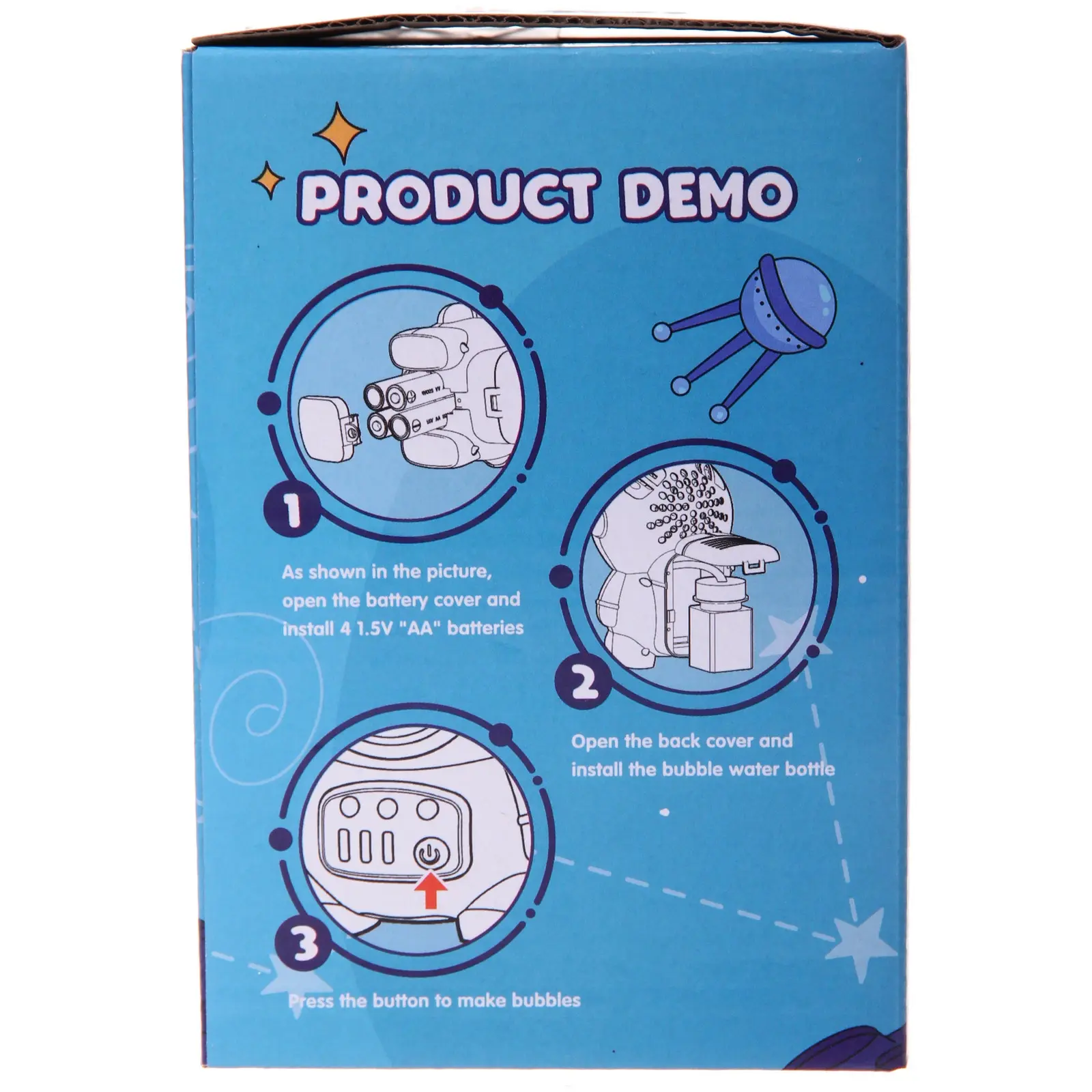 Игрушка сочетает в себе функциональность и стильный дизайн в виде забавного астронавта. Десять отверстий создают потрясающий эффект множества пузырей, а яркие цветные огни превращают простую игру в настоящее шоу.