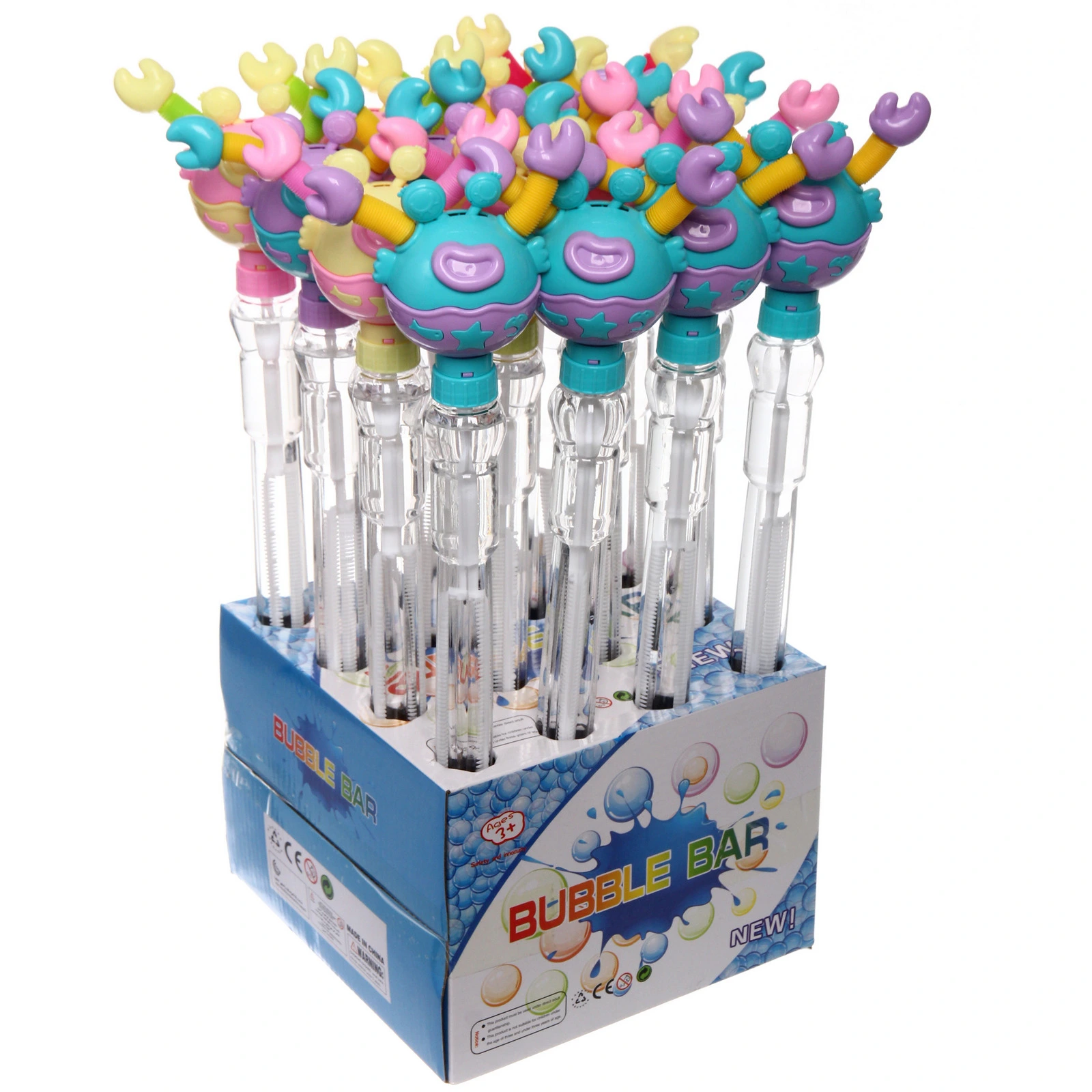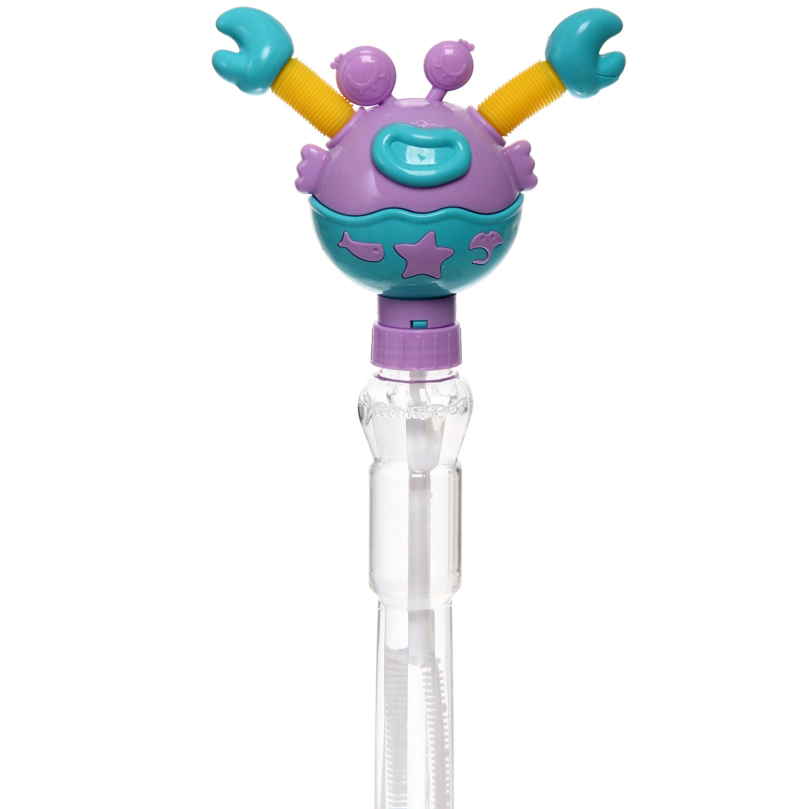 Флакон длиной 44 см удобно держать в руке, а объём 150 мл позволяет долго играть без необходимости частого доливания раствора. Игрушка подходит для прогулок во дворе, поездок на дачу, праздников и детских мероприятий.