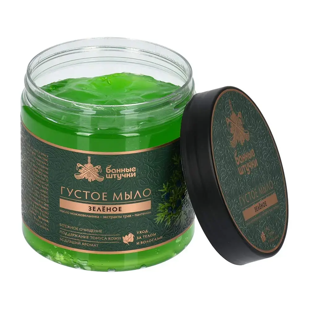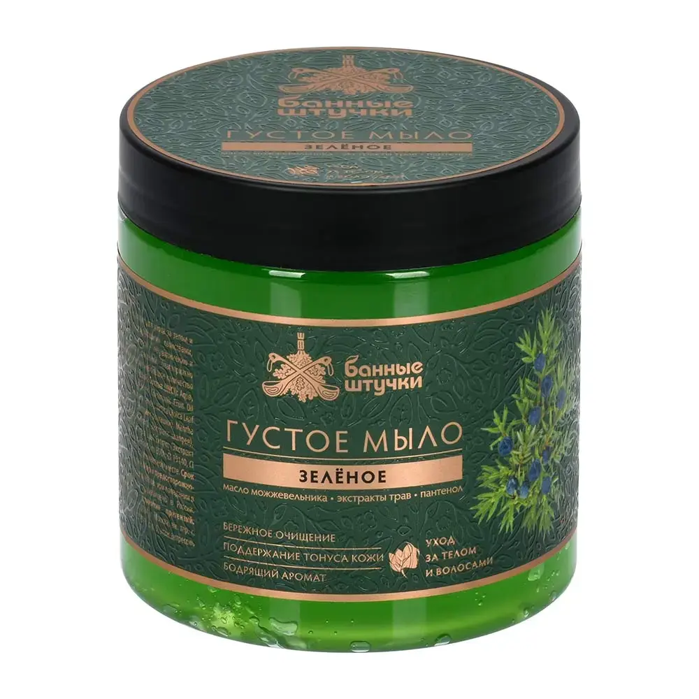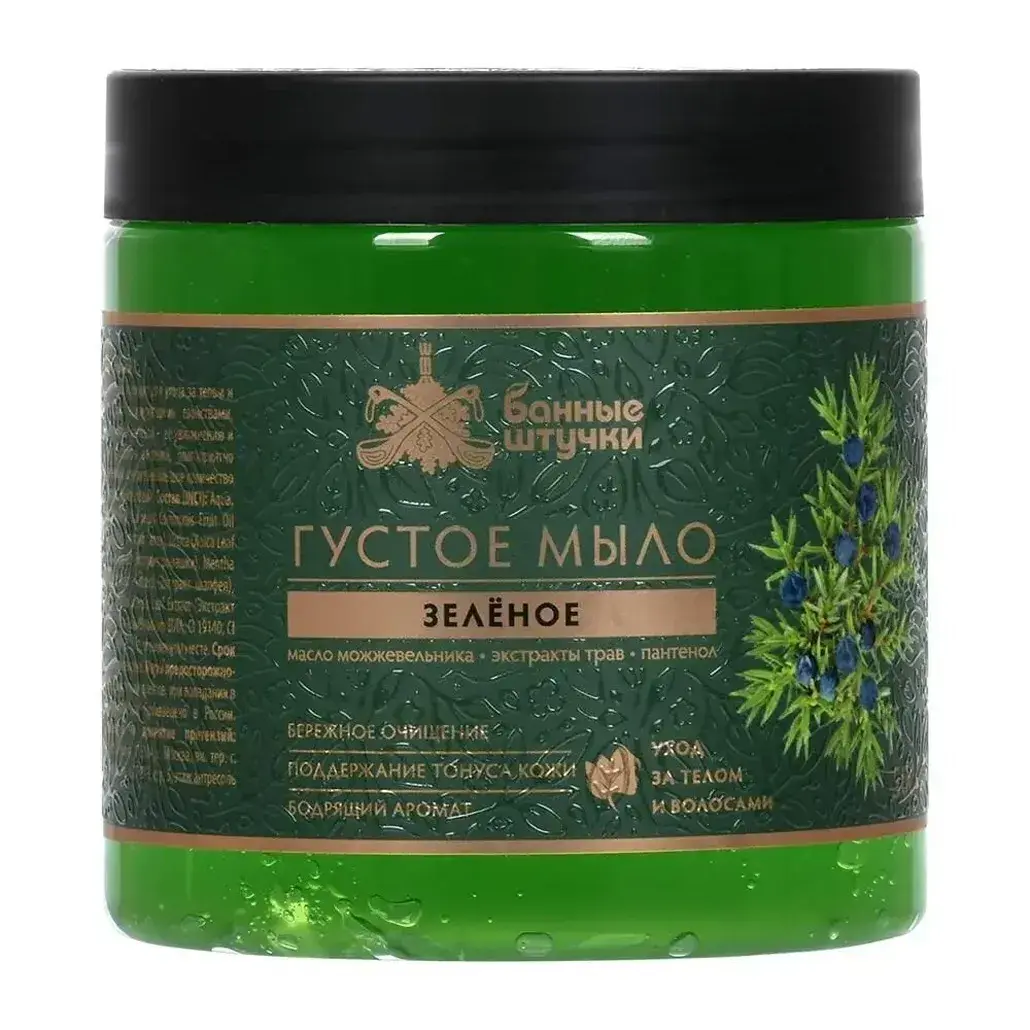 Это густое зелёное мыло идеально подходит для использования в бане и сауне, даря ощущение свежести и бодрости после каждого применения. Благодаря насыщенной консистенции и натуральным экстрактам, оно мягко очищает кожу и волосы, поддерживая их тонус и здоровье. Подходит для тех, кто ценит качественный уход и натуральные ингредиенты в своей гигиене. Уникальная формула с маслом можжевельника, травами и пантенолом обеспечивает бережное очищение и приятный бодрящий аромат.