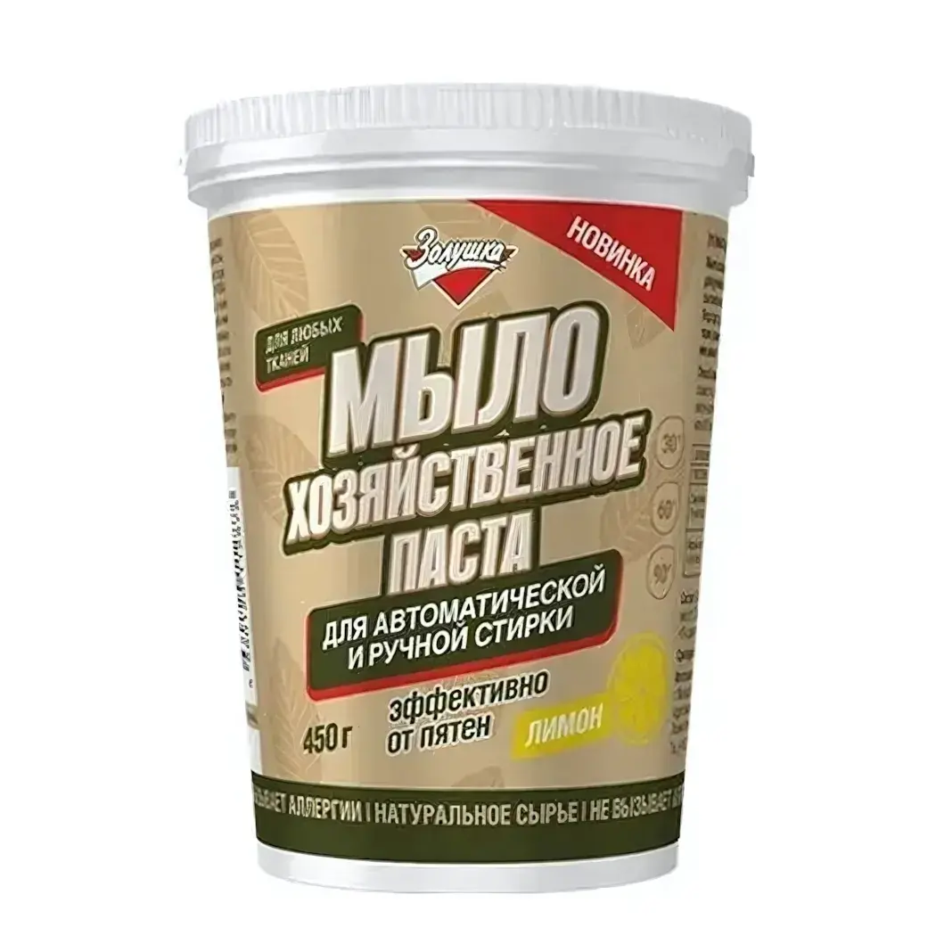Хозяйственное мыло-паста «Золушка» с лимоном — ваш надежный помощник в борьбе с пятнами любой сложности. Натуральный состав и концентрированная формула обеспечивают бережную стирку без вреда для здоровья.