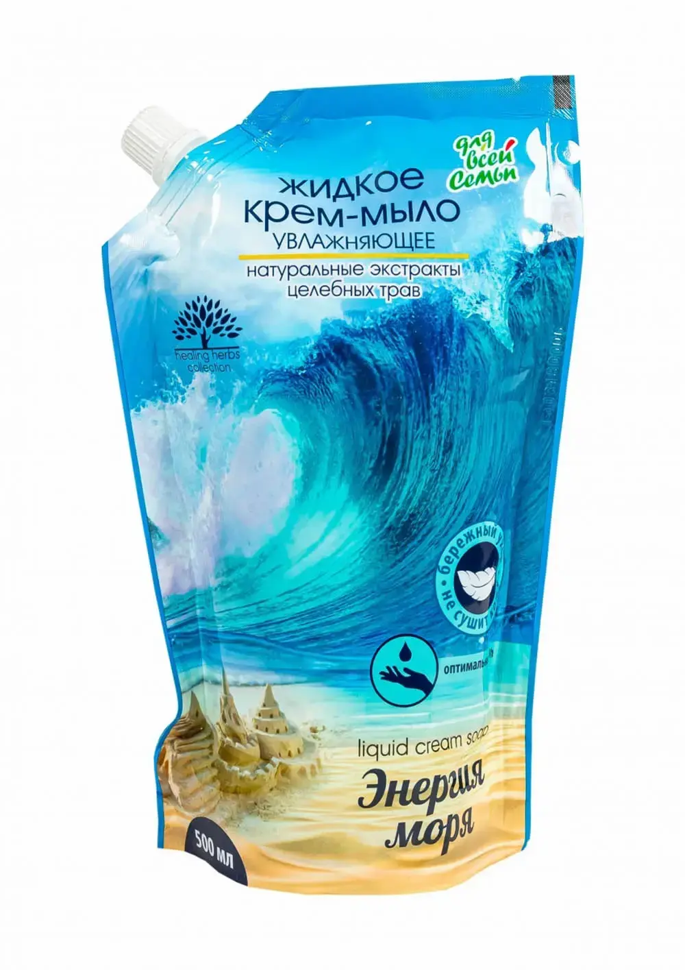 Объем мыла-крема составляет 500 мл, что обеспечивает длительное использование. Упаковка выполнена в голубом и бежевом цветах с изображением волны и песчаного пляжа, что создает атмосферу отдыха и расслабления. Не упустите возможность подарить своей семье заботу и комфорт с мылом-кремом "Энергия моря"!