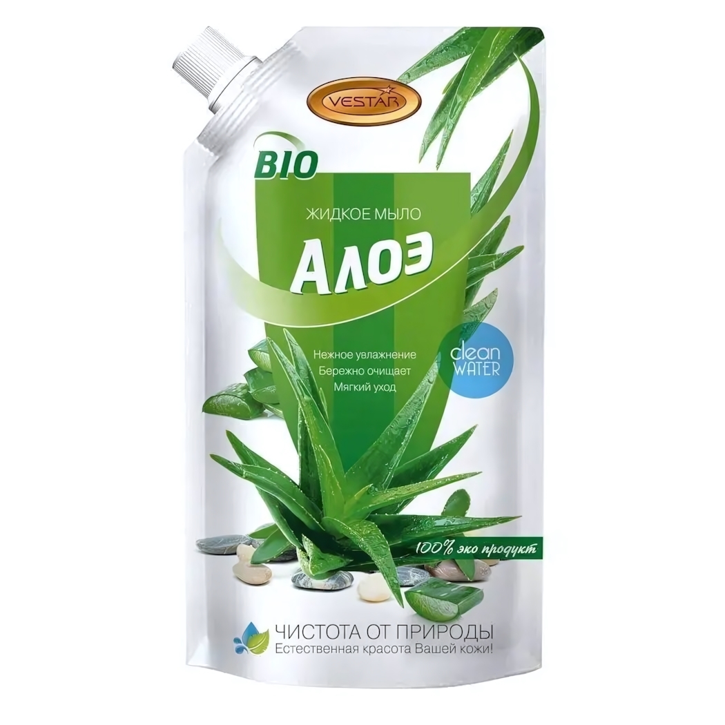 Жидкое мыло био-состав алоэ 500мл, нежное увлажнение, пластиковый дой-пак, цвет в ассортименте