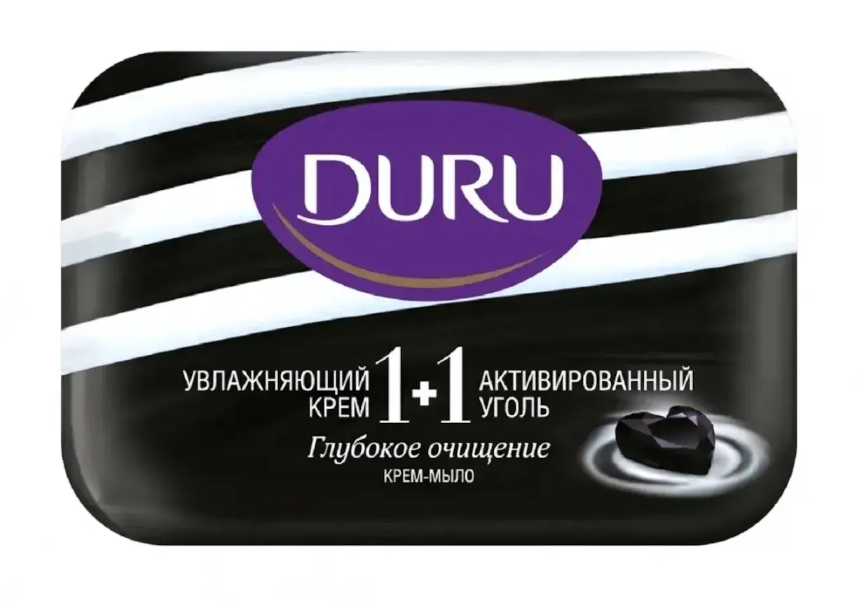 Крем-мыло 2-в-1 с активированным углем, увлажняющий крем в составе, 80 г, черная упаковка с белыми полосами
