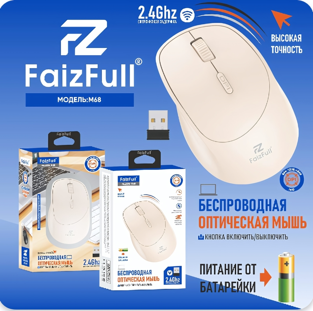 Беспроводная мышь FaizFull M68 создана для тех, кто ценит комфорт и свободу движений за компьютером. Благодаря технологии 2.4Ghz она обеспечивает стабильное соединение без задержек.