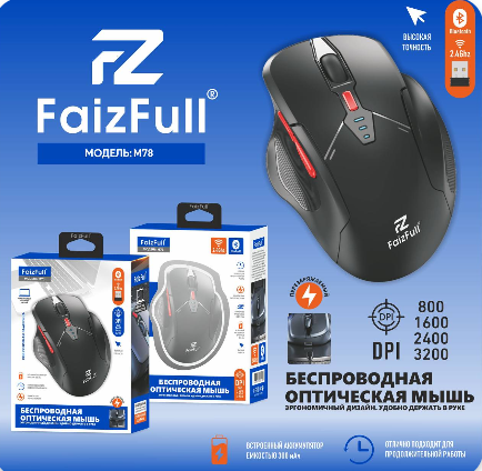 Воспользуйтесь удобством использования беспроводной мыши FaizFull M78 и добавьте в свою жизнь комфорт и стиль!