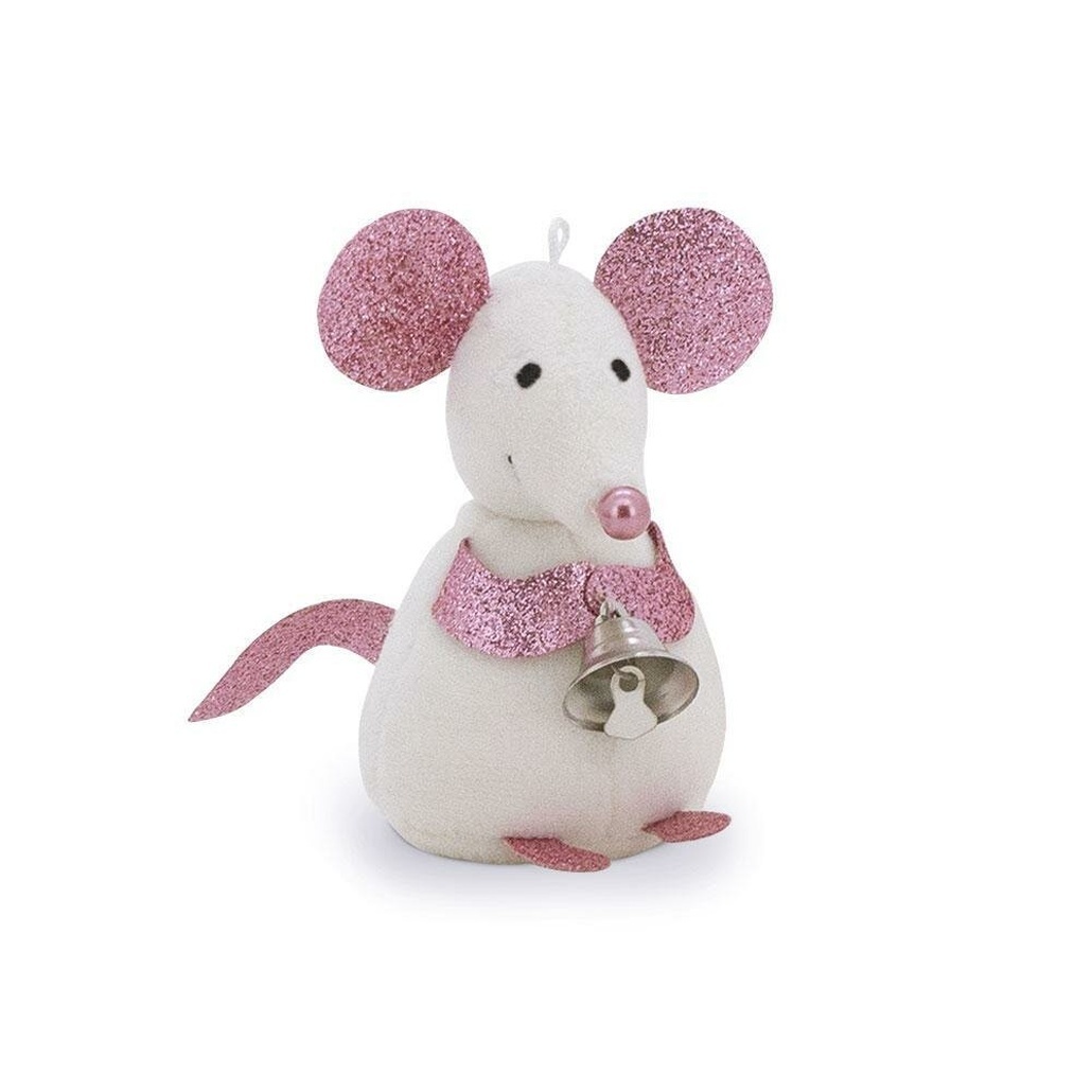 Размер игрушки составляет 9 см, что делает ее компактной и удобной для переноски. Игрушка имеет белый цвет с элементами оранжевого и розового, а также украшена блестящей ленточкой и колокольчиком, что добавляет ей особый шарм. Мягкая игрушка мышь 'МыШик' станет не только другом, но и символом удачи в новом году!