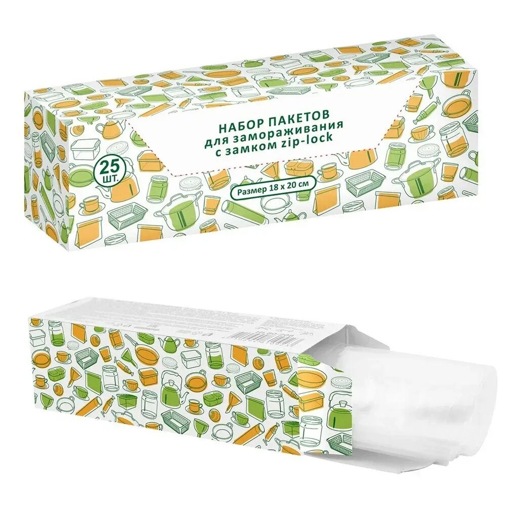 Пакеты для заморозки с zip-lock, 18x20см, набор 25 штук, полиэтилен