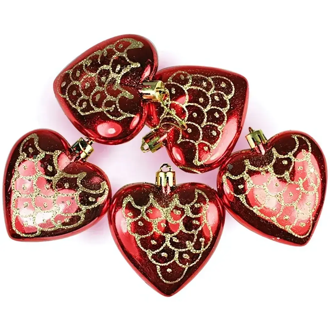 Этот набор из 5 ярких ёлочных украшений в форме сердец станет идеальным выбором для создания праздничной атмосферы. Красно-золотая цветовая гамма идеально впишется в новогодний декор и добавит роскоши вашей ёлке.