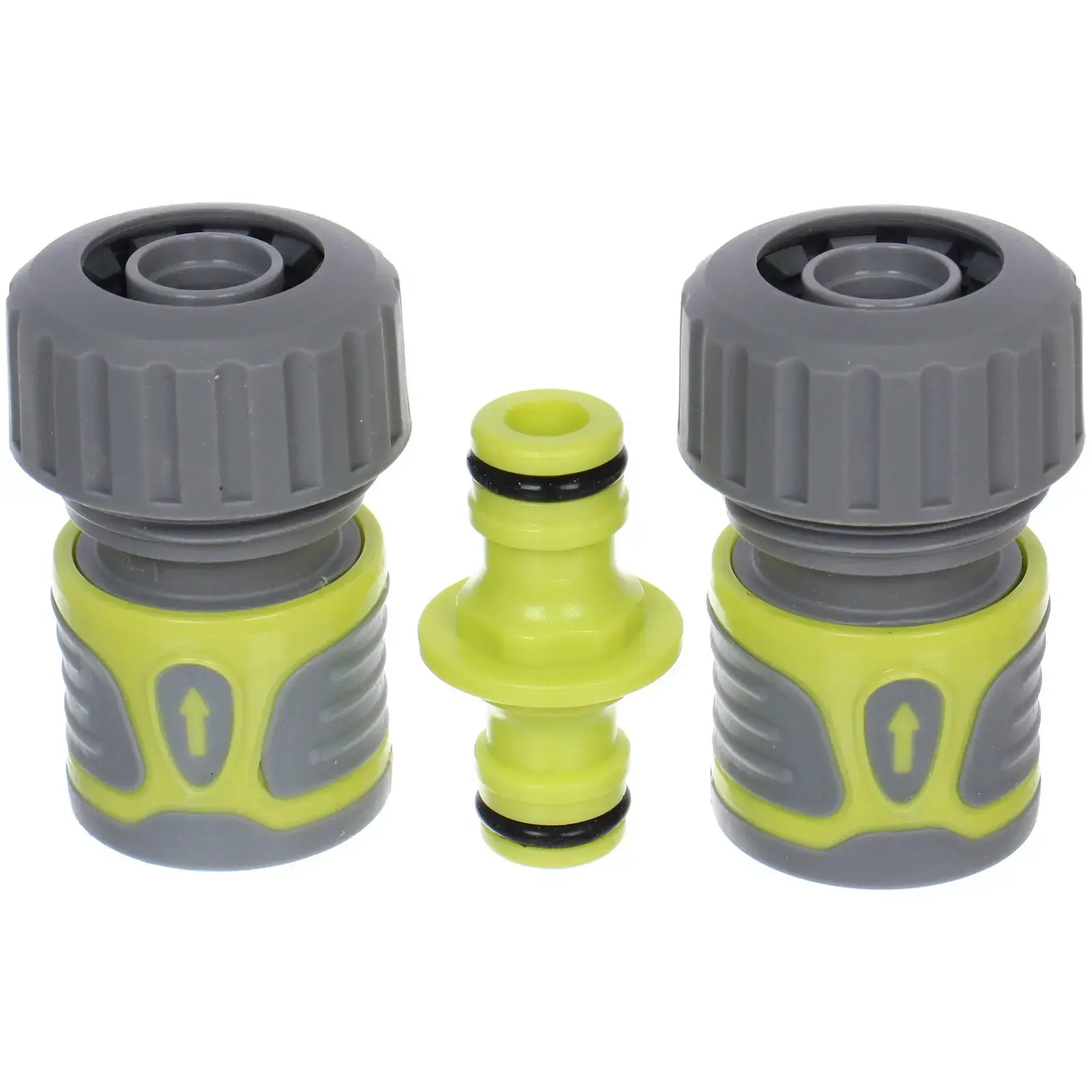 Этот набор из 2 коннекторов и штуцерного соединителя станет надежной основой для вашей садовой системы полива. Благодаря стандартному размеру 3/4" элементы совместимы с большинством садовых шлангов.