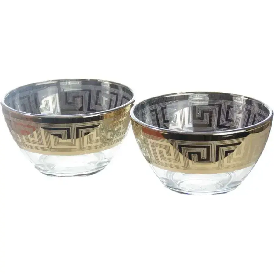 Салатники стеклянные 2 шт, металлический ободок «Барокко», h 6 см/d 11 см, для сервировки