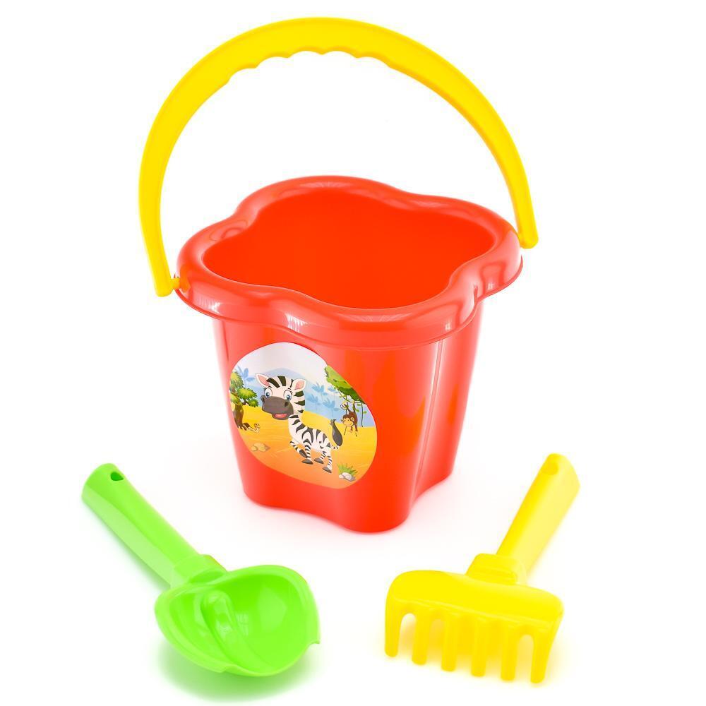 Набор включает в себя ведро-цветок среднего размера, совок и грабли, что позволяет создавать различные фигуры и конструкции из песка. Он идеально подходит для детей, которые любят проводить время на свежем воздухе, играя с песком. Легкий и компактный, набор легко взять с собой на природу или в поездку.