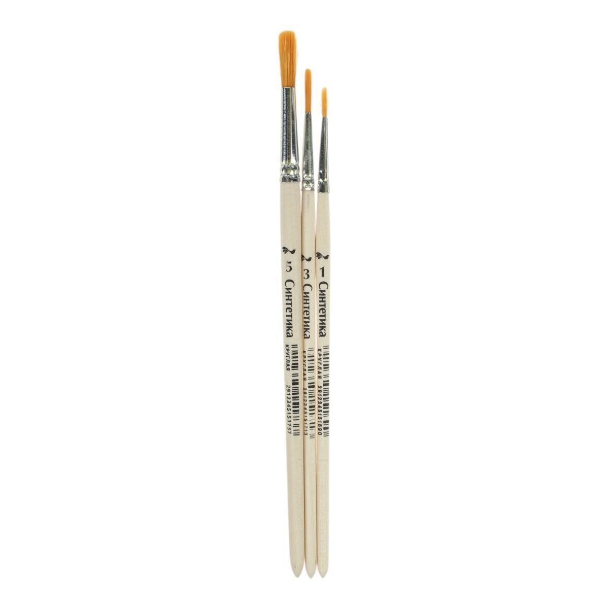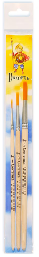 В набор входят три кисти разного размера: №1, №3 и №5, что позволяет использовать их для различных техник рисования, включая акварель и масло. Каждая кисть имеет удобную деревянную ручку, обеспечивающую надежный захват и контроль при работе. Синтетический ворс кистей гарантирует отличное удержание краски и равномерное нанесение на поверхность.