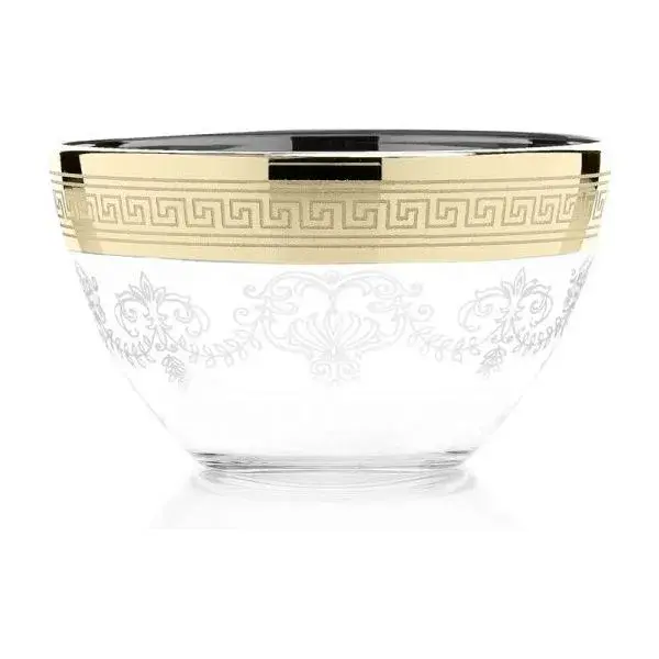Набор из трёх стеклянных салатников с золотым орнаментом станет украшением праздничного стола и повседневных обедов. Идеально подходит для сервировки салатов, закусок, десертов и фруктов.