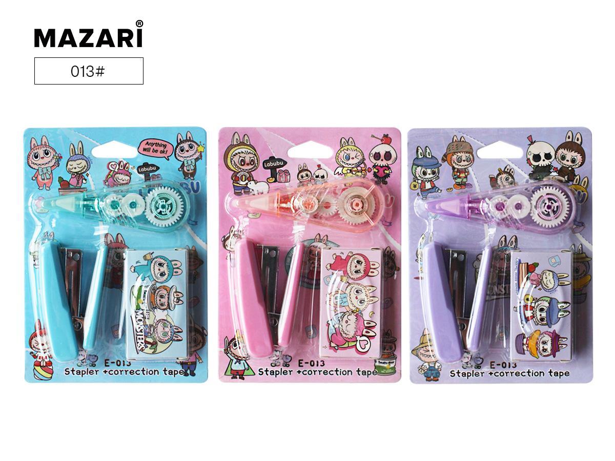 Каждый предмет набора создан с упором на долговечность и удобство использования. Степлер легко заправляется скобами, лента имеет плавный механизм нанесения и не смазывает чернила. Упаковка с европодвесом позволяет хранить набор на крючке или стенде, что особенно удобно в ограниченном пространстве.