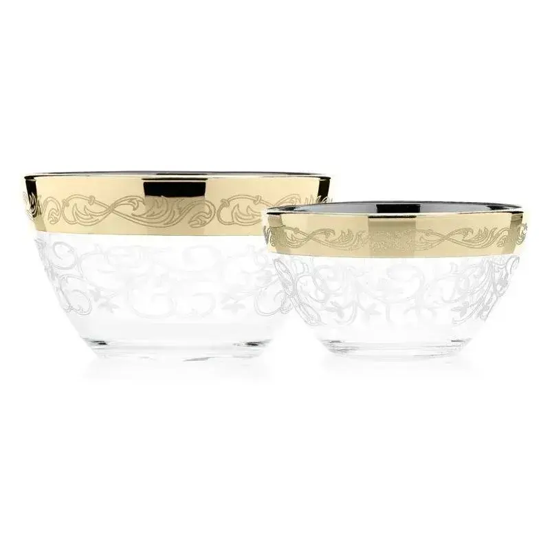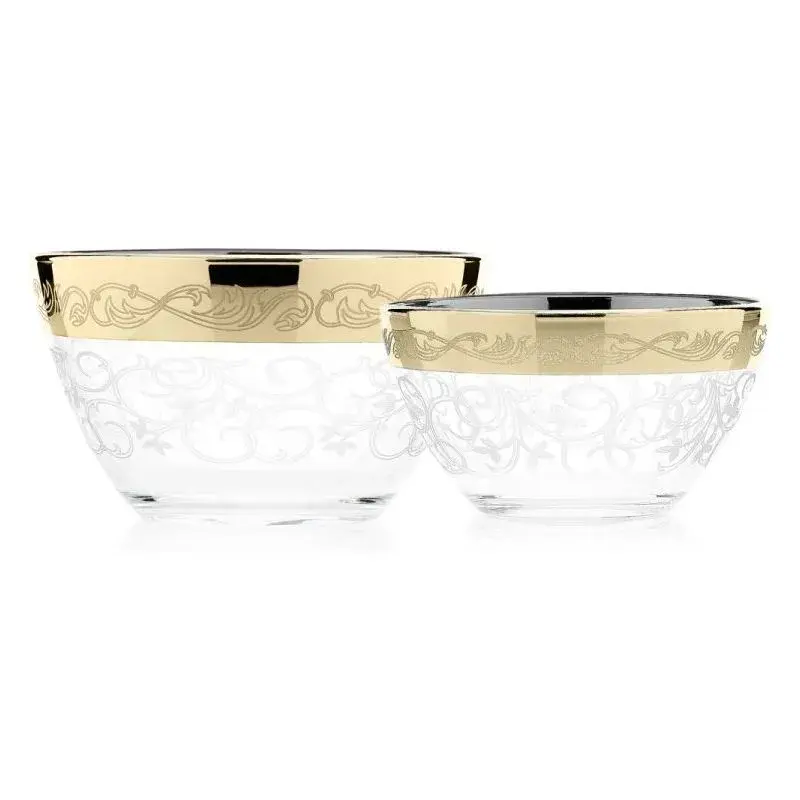 Прозрачные стеклянные салатники с золотистым декором создают праздничное настроение и подчеркивают красоту блюд. Идеальное решение для повседневного использования и торжественных мероприятий.