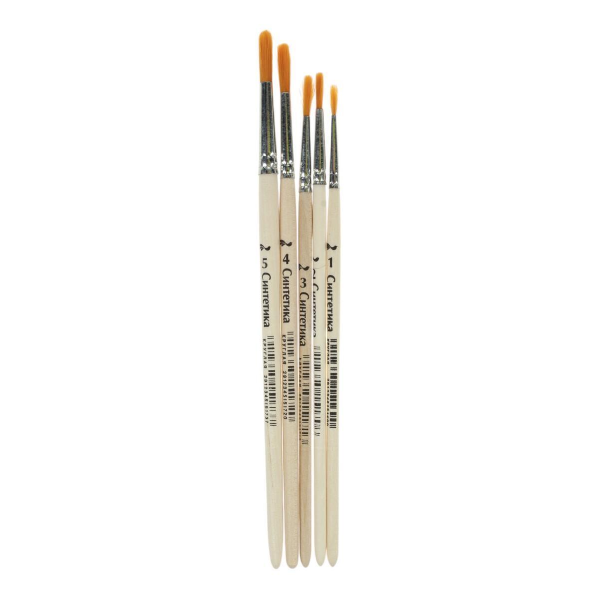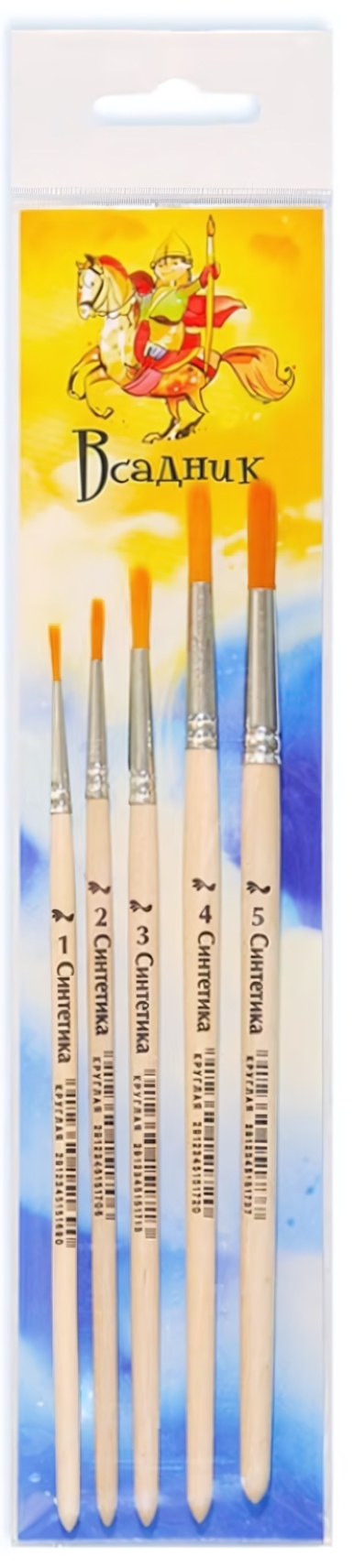 Набор кистей "Всадник", синтетика круглая №1-5, деревянные ручки, оранжевый ворс, для профессиональной живописи