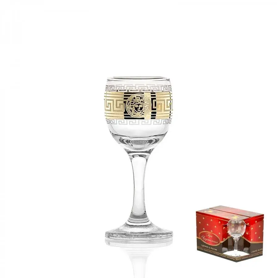 Набор 6 рюмок «Версаль 3» 60 мл, прозрачное стекло с золотисто-чёрным узором, праздничный дизайн