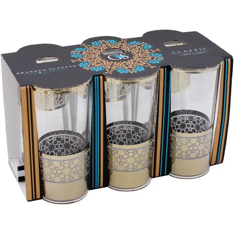 Набор 6 стаканов «Звезда Альтаир» 230 мл, прозрачное стекло с золотистым декором, для сервировки напитков