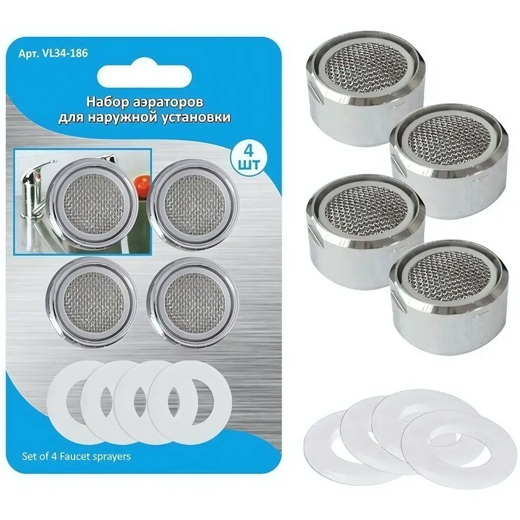 Набор аэраторов для смесителей, 4 шт, металл/пластик, 2,4х1,3 см, экономия воды
