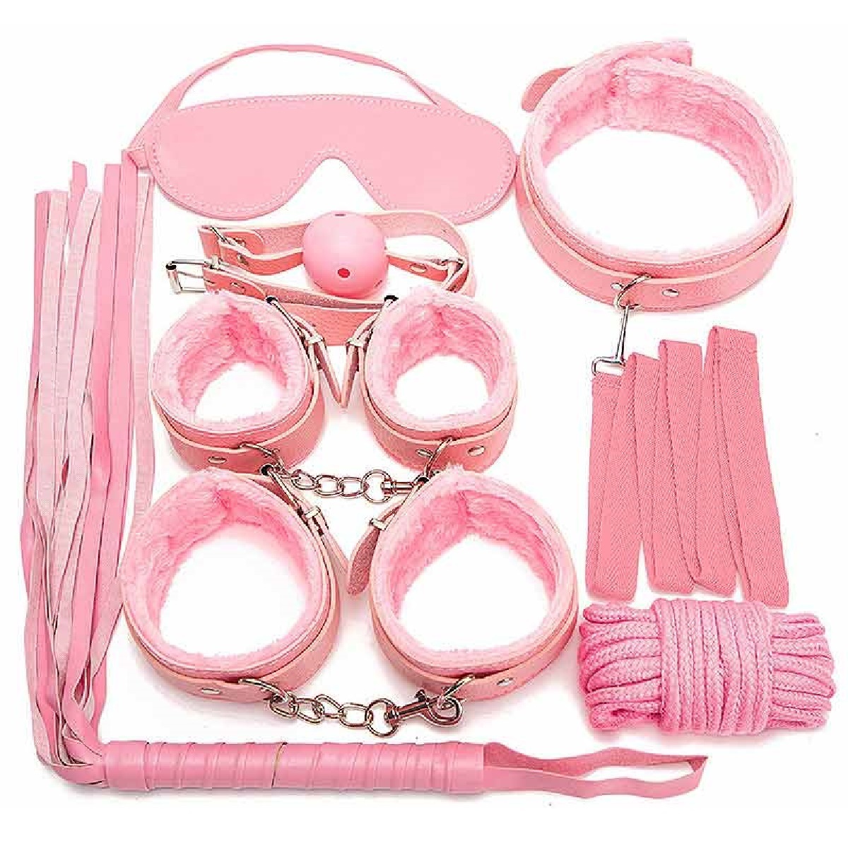 Набор включает в себя: наручники, маску для глаз, бондажную веревку, кляп, поножи, ошейник с поводком и флоггер. Все элементы выполнены в нежном розовом цвете, что добавляет игривости и эстетики. Обратите внимание, что набор не водонепроницаем и не имеет вибрации, что делает его идеальным для сухих игр. Убедитесь, что вы используете набор в безопасной и согласованной обстановке, чтобы ваши игры были не только увлекательными, но и безопасными.