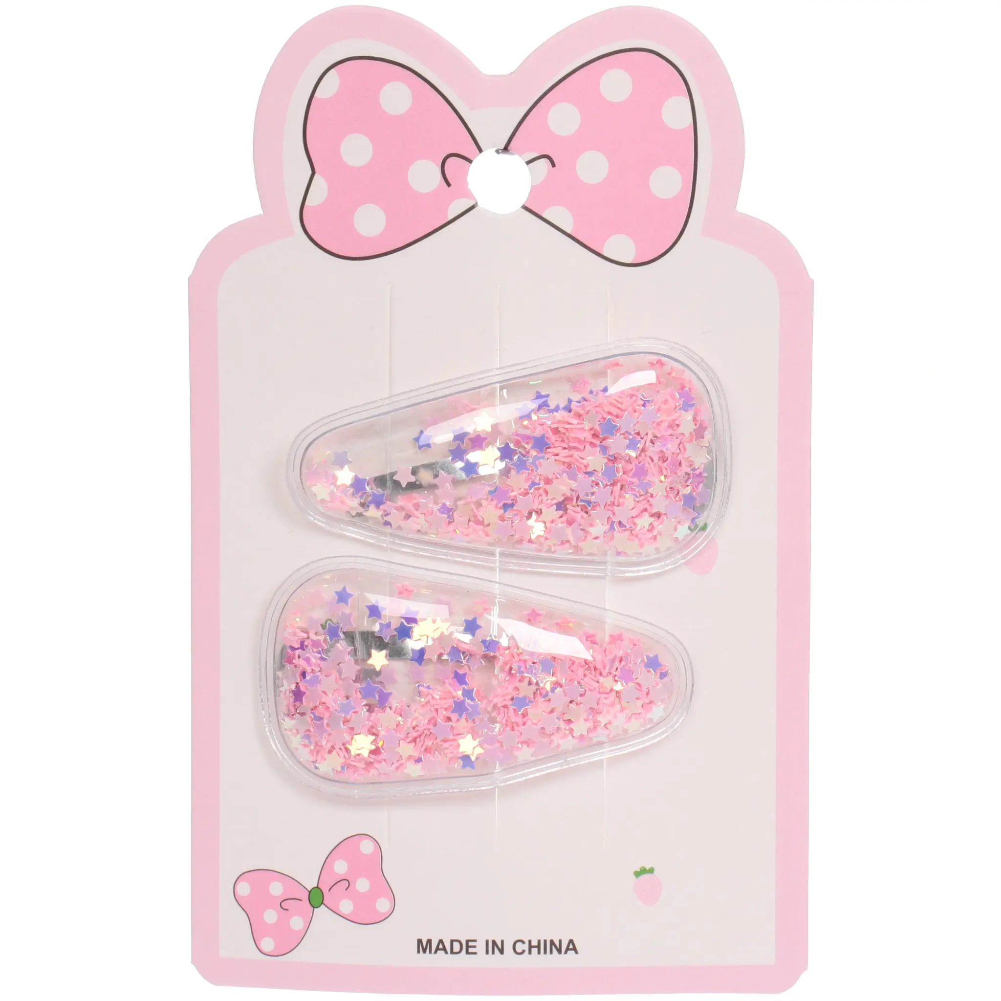 - 2 прозрачные заколки с розовыми и фиолетовыми блестками