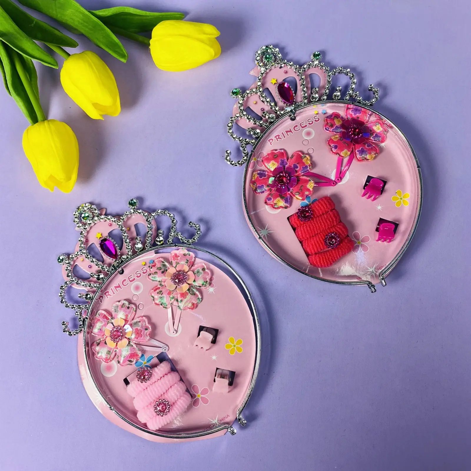 Набор аксессуаров для волос с короной-упаковкой превратит ежедневные причёски в волшебный ритуал. Идеально подходит для детских праздников, фотосессий и повседневной носки.