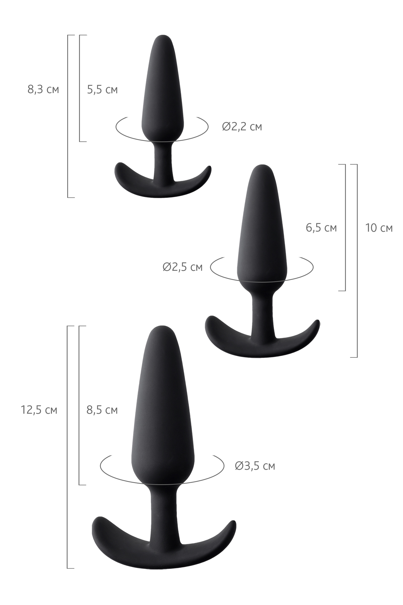 Набор анальных втулок 'Eridani', 3 шт, черный, силикон, размеры 8.3-12.5см