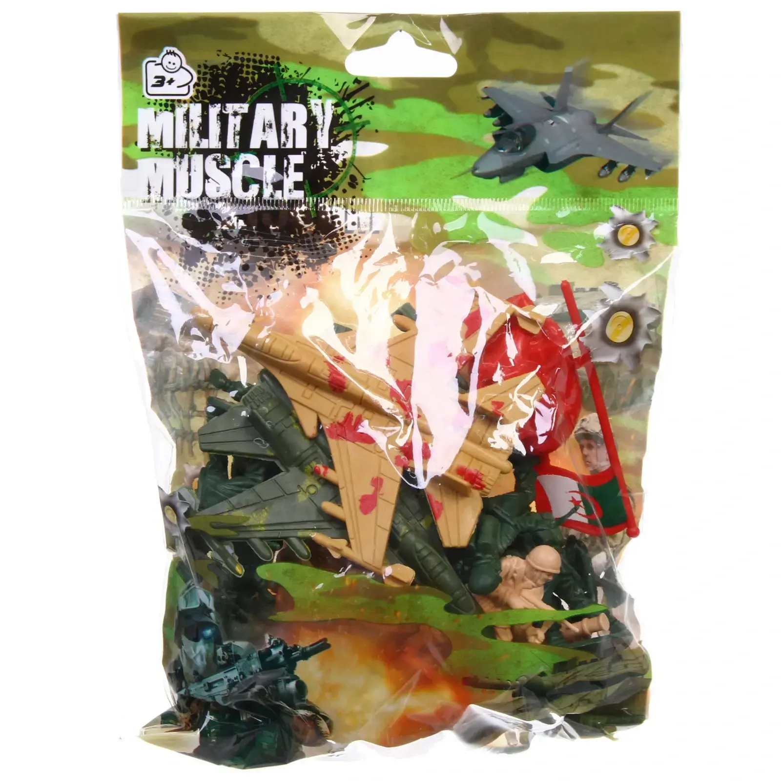 Набор включает 27 предметов, среди которых фигурки солдат в различных позах, два пластиковых самолета и флаг. Все элементы имеют яркие цвета и детализированную проработку, что делает их привлекательными для детей. Размеры упаковки составляют 15.5х21.5 см, что удобно для хранения и транспортировки.