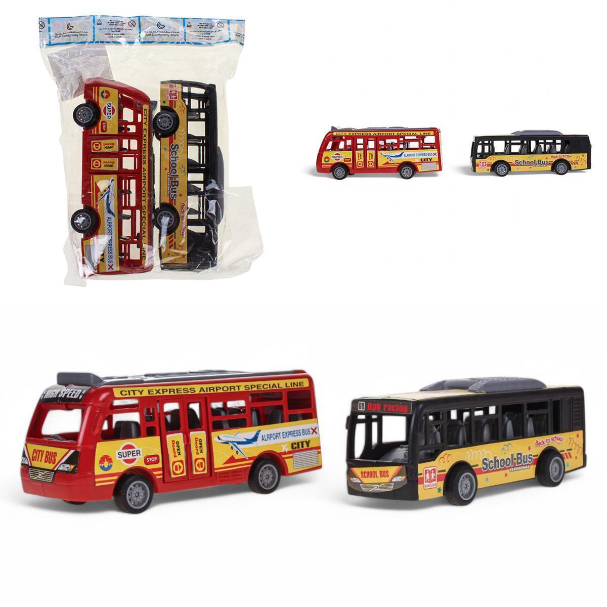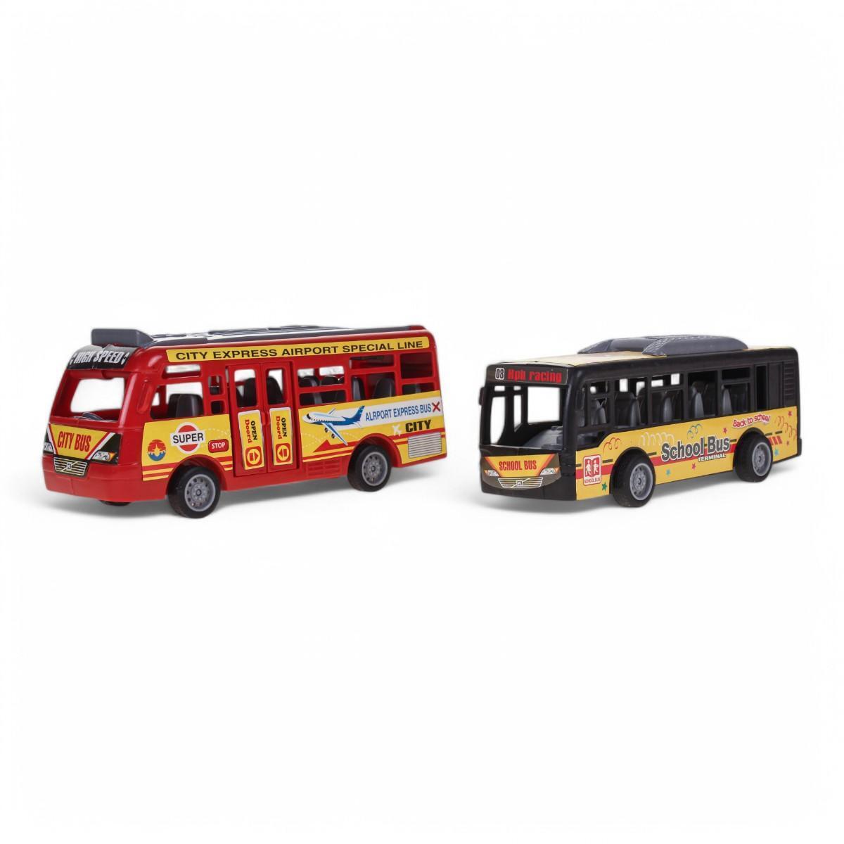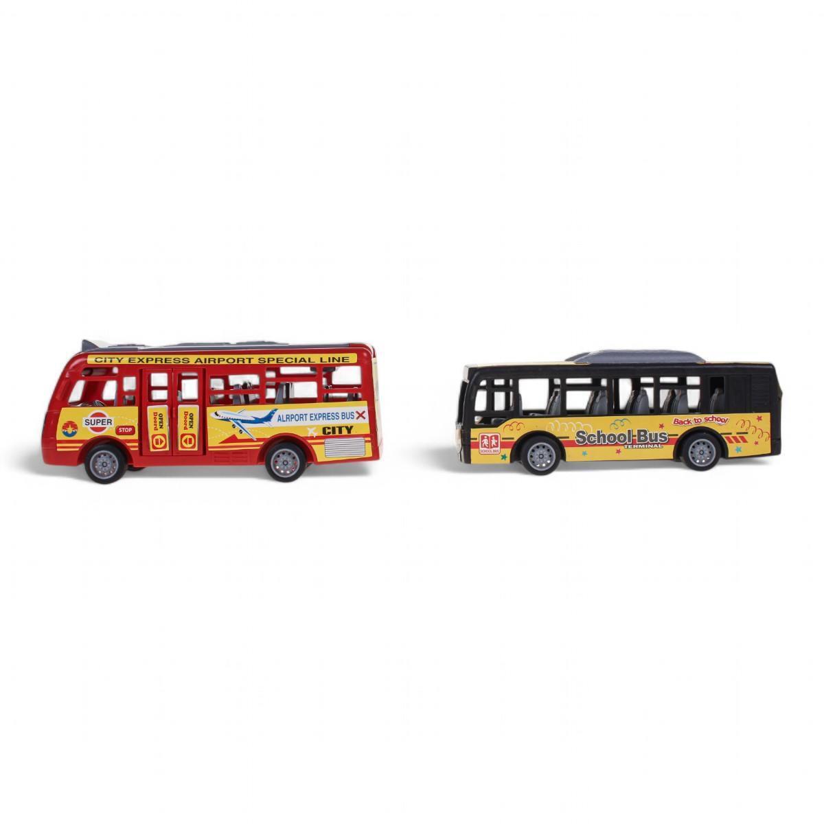 Этот набор включает два привлекательных моделирования автобусов, выполненных из прочного пластика, что обеспечивает долговечность и безопасность для игр. Размеры 17,6x5,2x6,4 см делают их удобными для маленьких ручек и позволяют использовать как в домашних условиях, так и в игровой зоне.