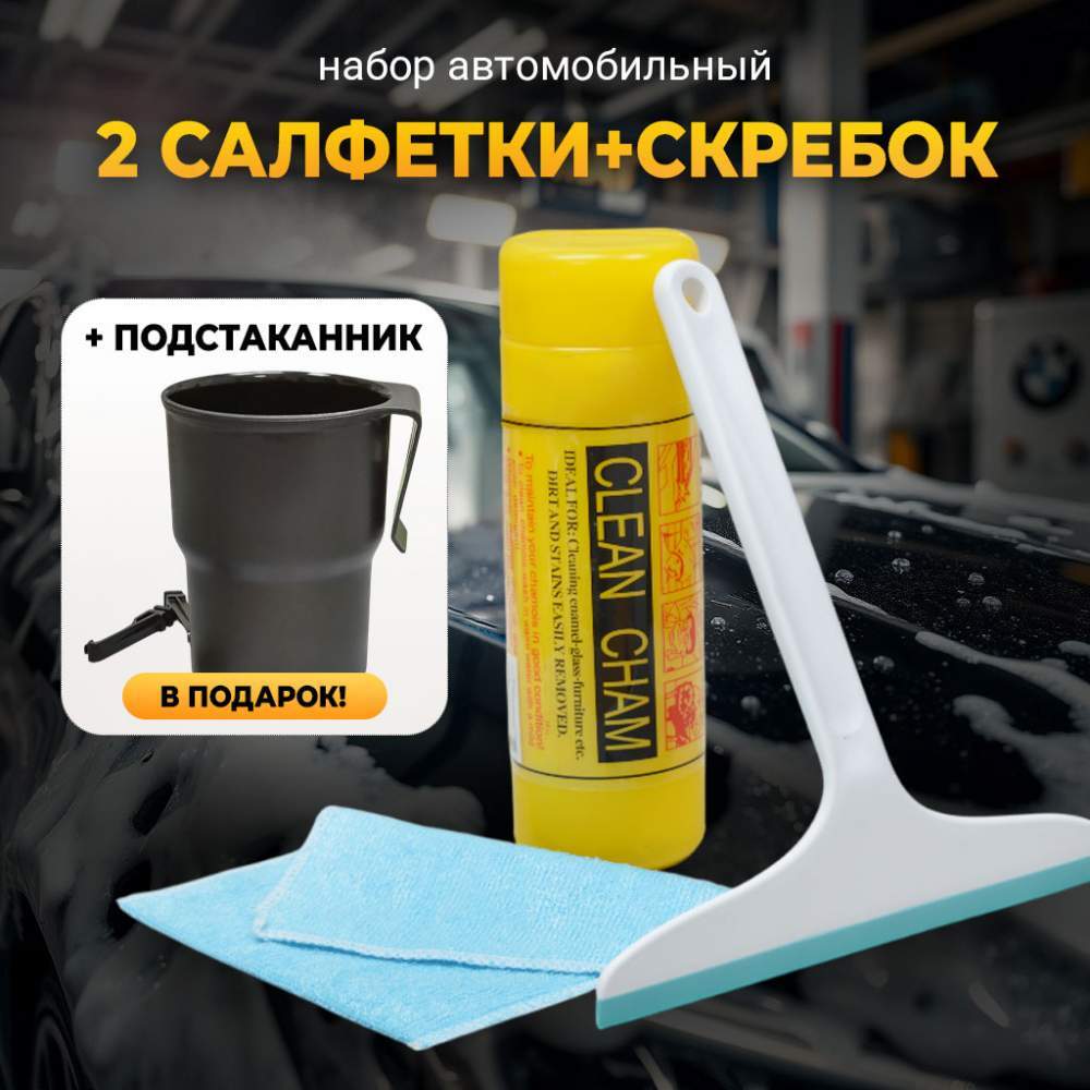 Набор подойдёт тем, кто ценит аккуратность машины круглый год. Просто используйте салфетку ПВА для деликатной чистки поверхности без разводов, микрофибровую ткань — для финальной полировки и протирки, а скребок — для быстрого удаления влаги и загрязнений со стекол. Цвет элементов может отличаться, что добавляет индивидуальности вашему комплекту.
